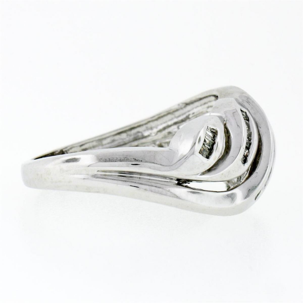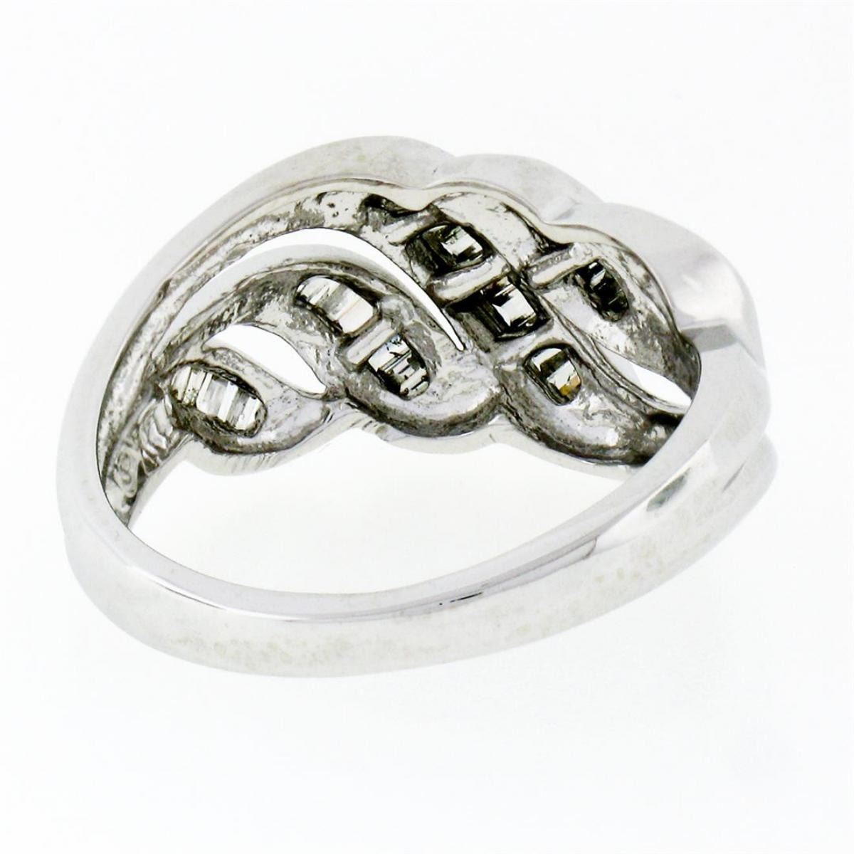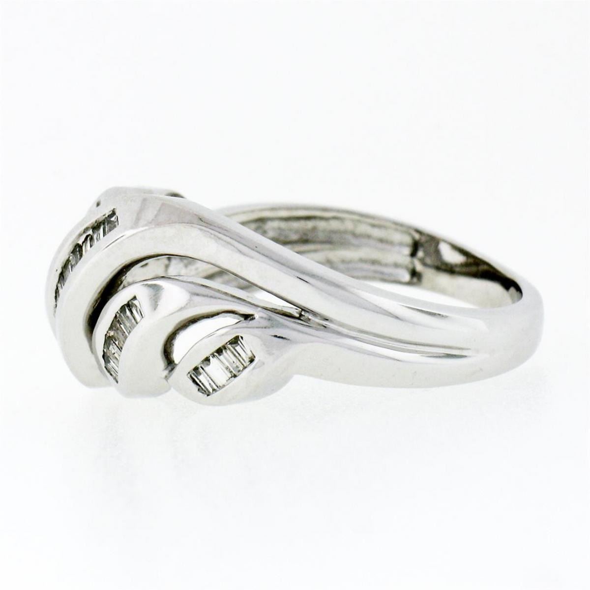 One Solid 14k White Gold .75ct Channel Set Baguette Cut Diamond Open Swirl Band Ring. Item Details: Material: Solid 14k White Gold, Weight: 4.24 Grams, Stone(s): (29) Natural Genuine Diamonds - Baguette Cut - Channel Set - J/K Color - SI2/I1 Clarity, Total Carat Weight: 0.75 (approx.), Ring Size: 6.5 (We can custom size this ring.), Ring Width: 9.50mm at its widest point, Condition: Like New!