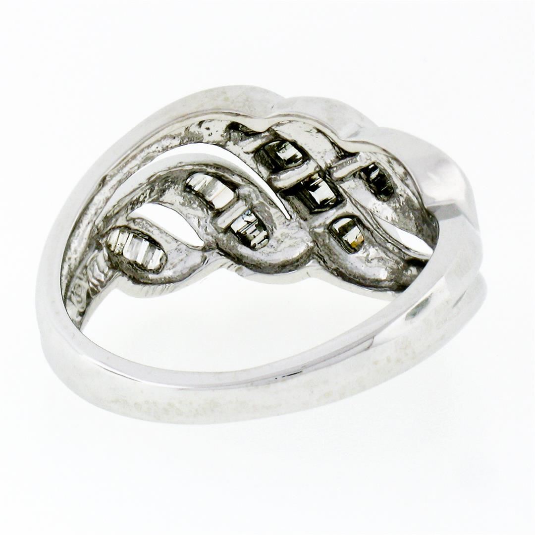 One Solid 14k White Gold .75ct Channel Set Baguette Cut Diamond Open Swirl Band Ring. Item Details: Material: Solid 14k White Gold, Weight: 4.24 Grams, Stone(s): (29) Natural Genuine Diamonds - Baguette Cut - Channel Set - J/K Color - SI2/I1 Clarity, Total Carat Weight: 0.75 (approx.), Ring Size: 6.5 (We can custom size this ring.), Ring Width: 9.50mm at its widest point, Condition: Like New!
