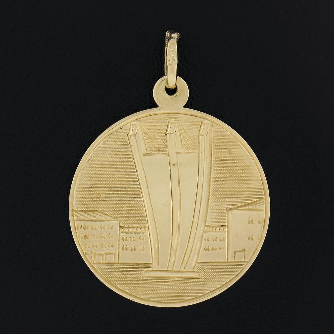 Solid 14k Yellow Gold Detailed Two Towers Medallion Charm Pendant w/ Dual Finish