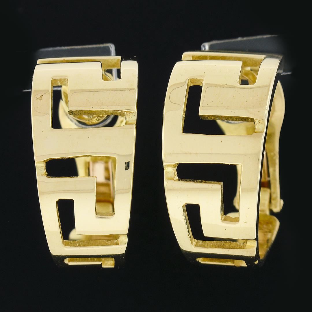 A solid 18k yellow gold open work cuff earrings. The earrings measure approximately 23.2x10.4mm and weigh a total of 13.31 grams.