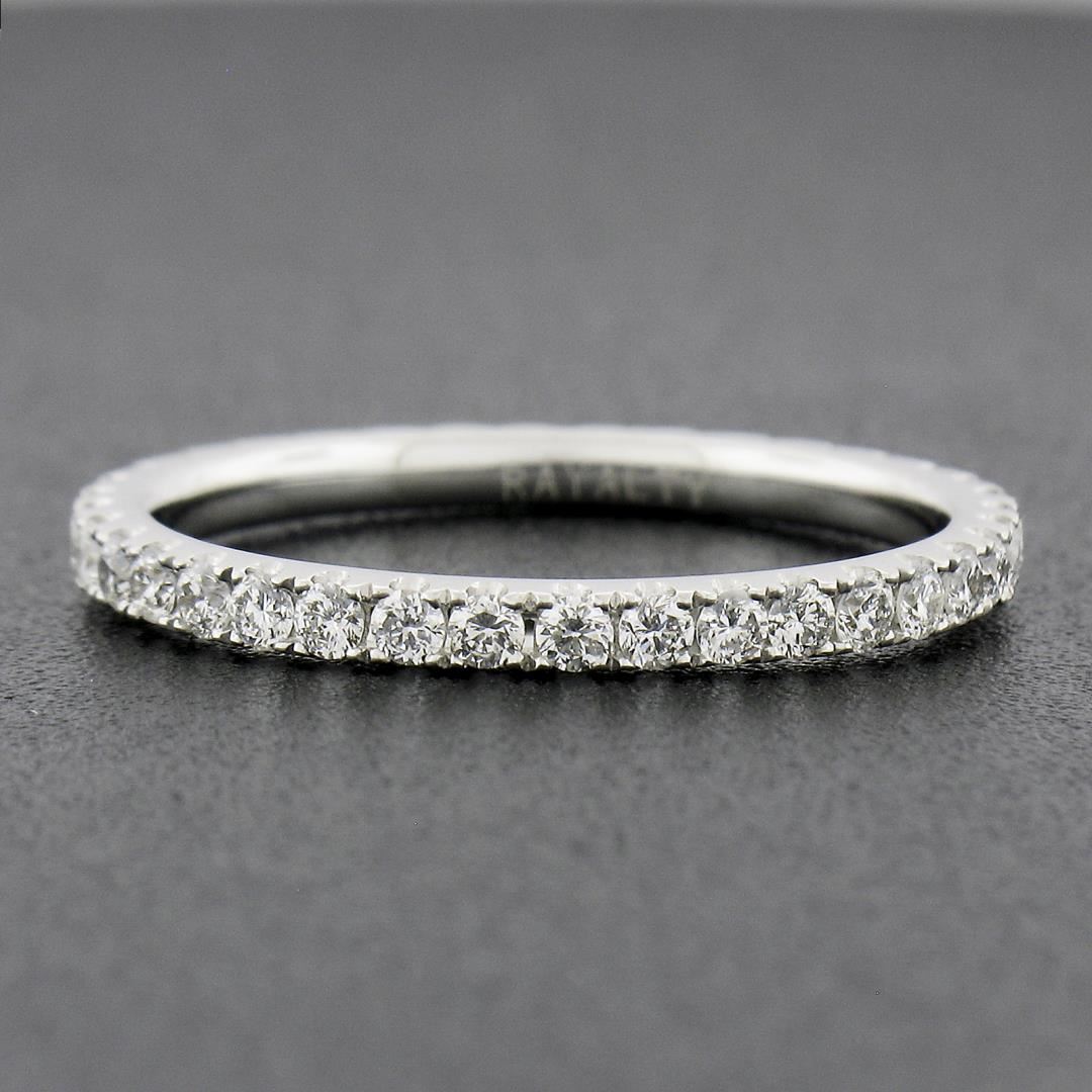 A solid 18k white gold eternity band ring, with 39 round cur natural diamonds ( G/H - VS2-SI2; 0.59ctw). The ring is size 7.0, weighs a total of 1.90 grams, and measures 2mm wide.