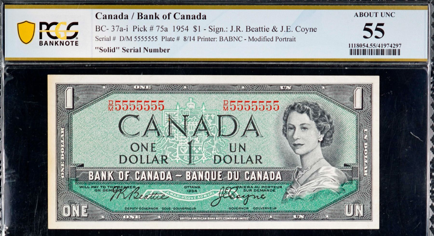 Solid; 1954 $1 BC-37a-i #D/M5555555 PCGS Choice About Uncirculated-55