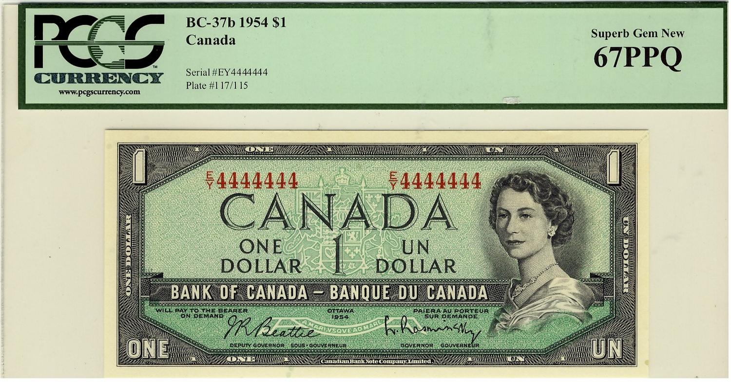 Solid 1954 $1 BC-37b #EY4444444, PCGS Superb Gem UNC67PPQ.