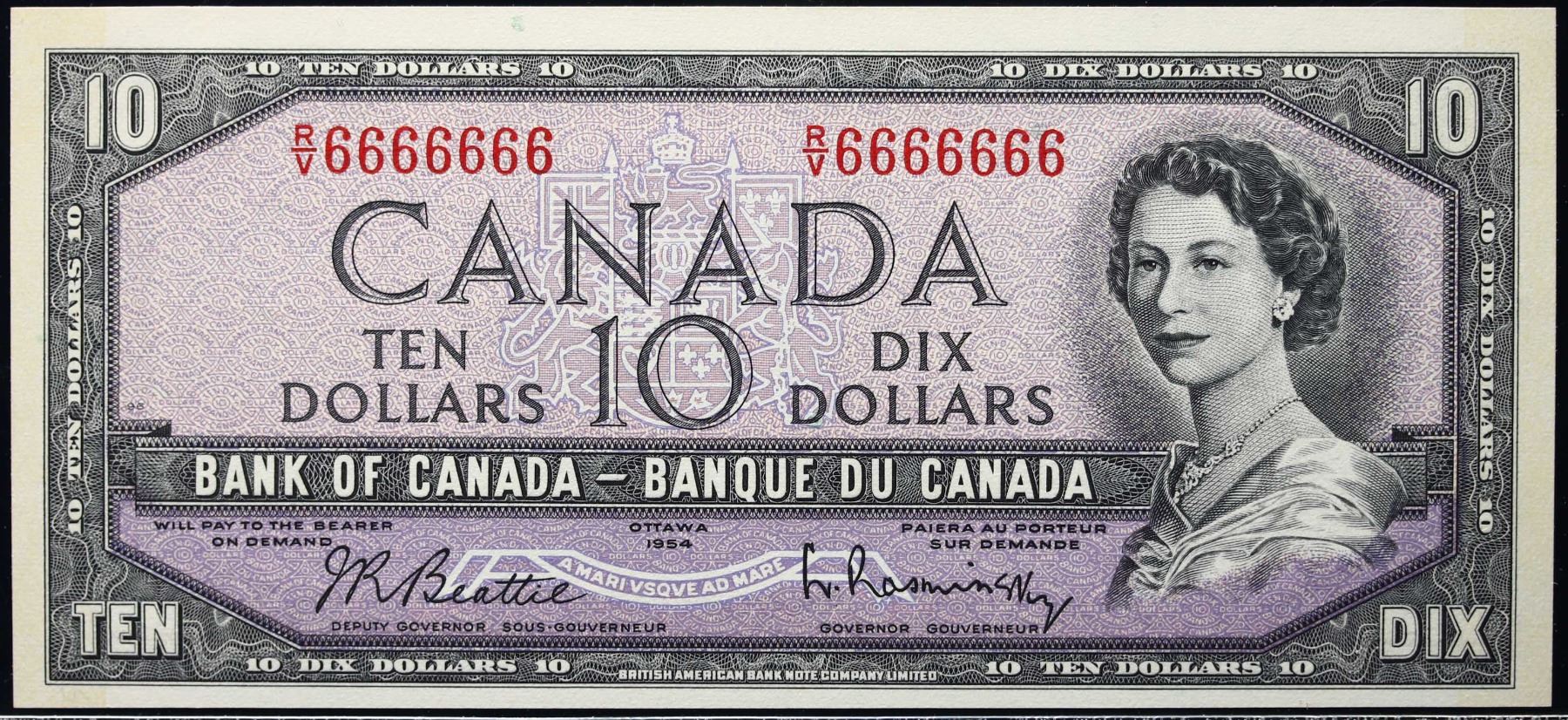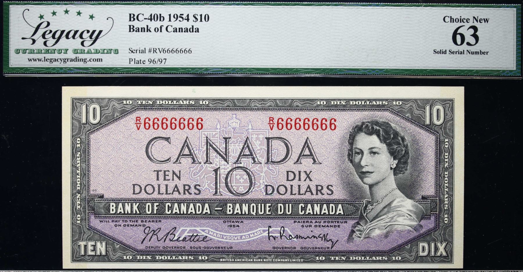 Solid; 1954 $10 BC-40B #R/V6666666 LCG Choice Uncirculated-63