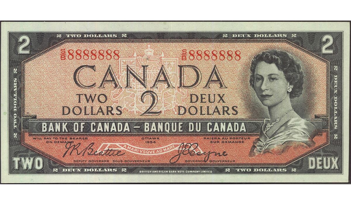 Solid; 1954 $2 BC-38a #SB8888888, UNC.