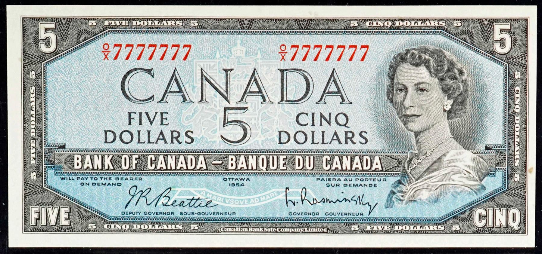 Solid; 1954 $5 BC-39b #O/X7777777 LCG Choice Uncirculated-64PPQ