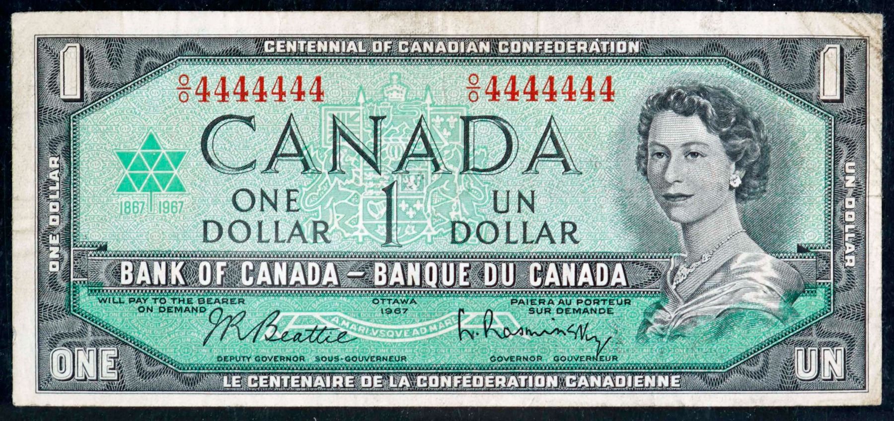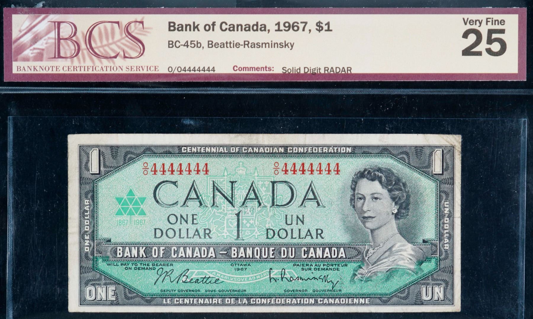 Solid; 1967 $1 BC-45b #O/O4444444 BCS Choice Very Fine-25