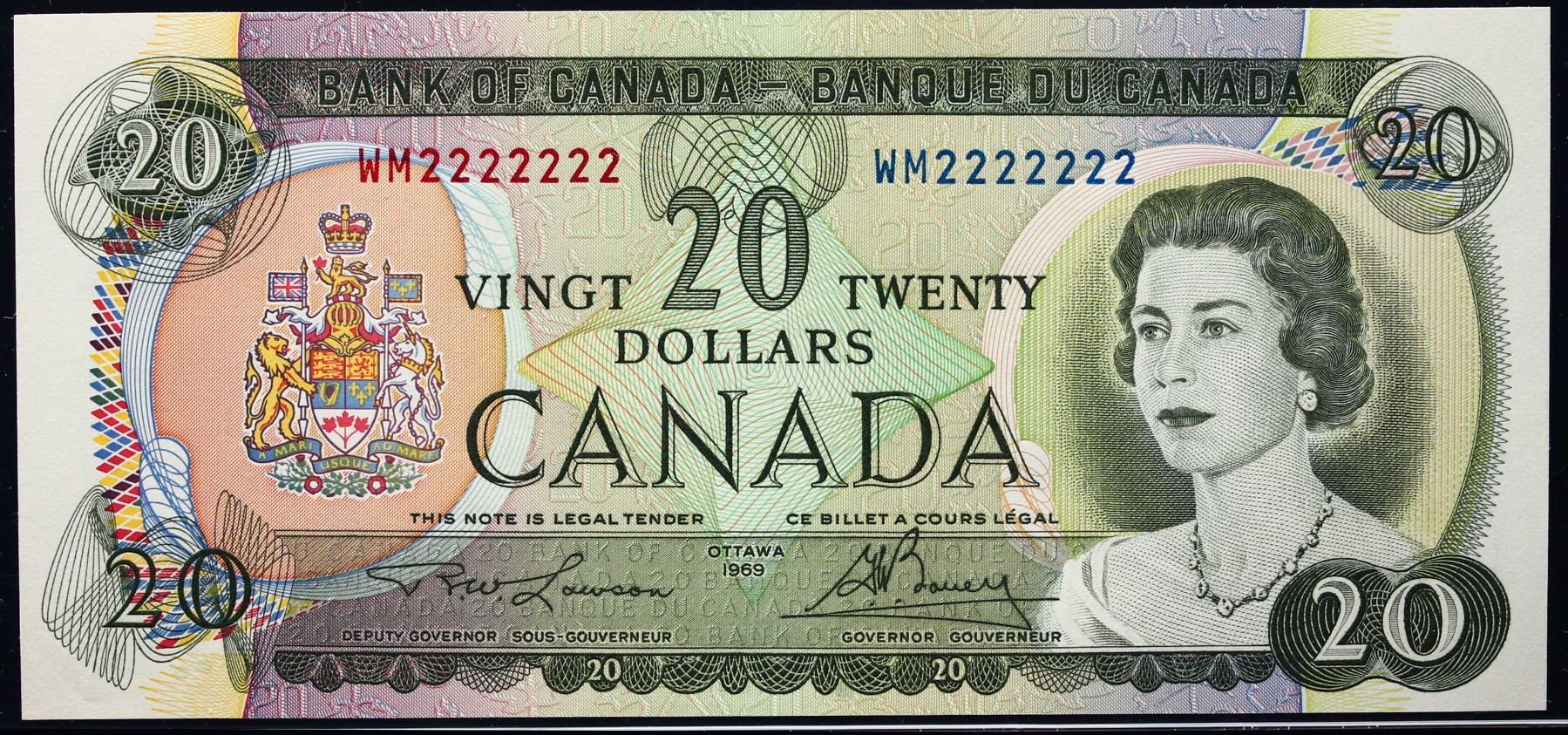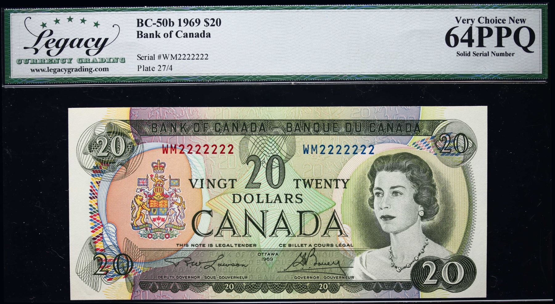 Solid; 1969 $20 BC-50B #WM2222222 LCG UNC 64PPQ