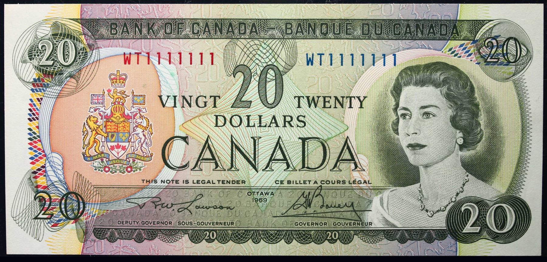 Solid; 1969 $20 BC-50B #WT1111111 LCG Choice Uncirculated-64PPQ