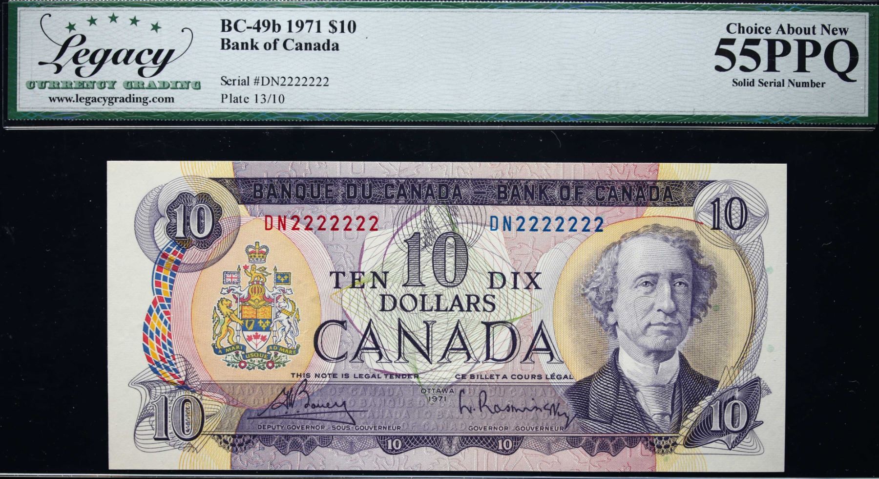 Solid; 1971 $10 BC-49B #DN2222222 LCG Choice About Uncirculated-55PPQ
