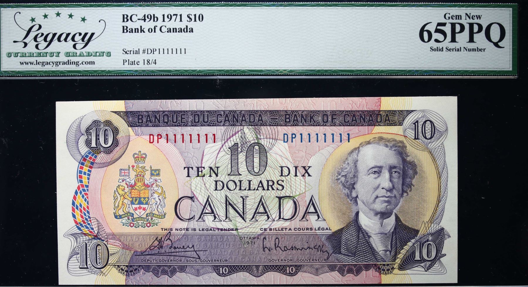Solid; 1971 $10 BC-49B #DP1111111 LCG Gem Uncirculated-65PPQ