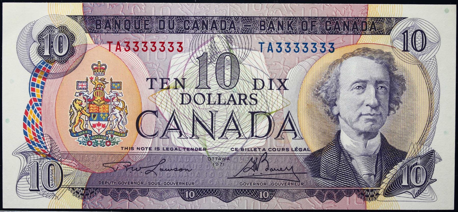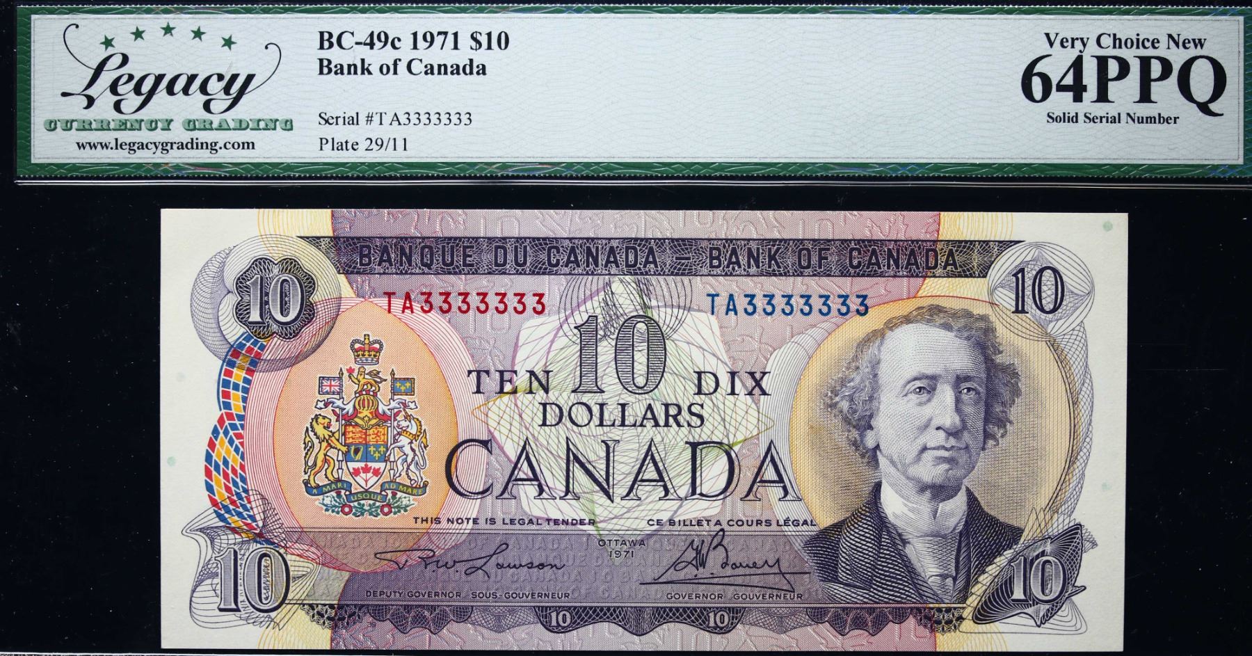 Solid; 1971 $10 BC-49C #TA3333333 LCG Choice Uncirculated-64PPQ