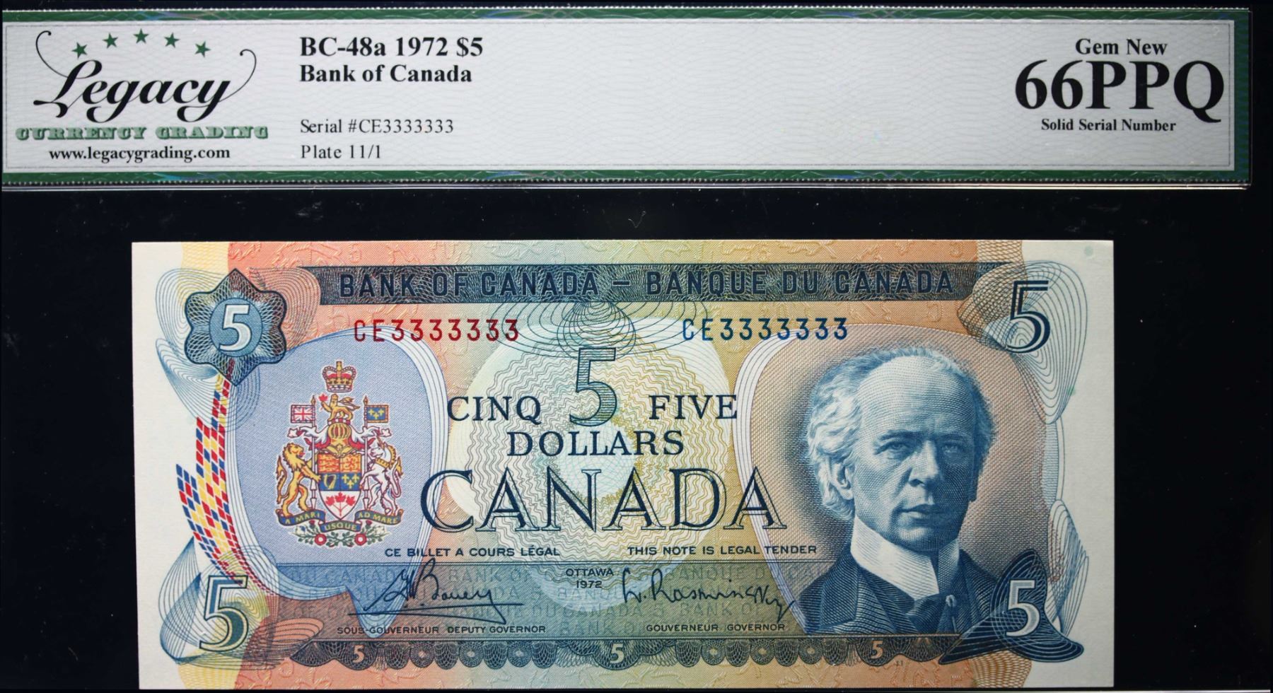 Solid; 1972 $5 BC-48A #CE3333333 LCG Superb Gem Uncirculated-66PPQ