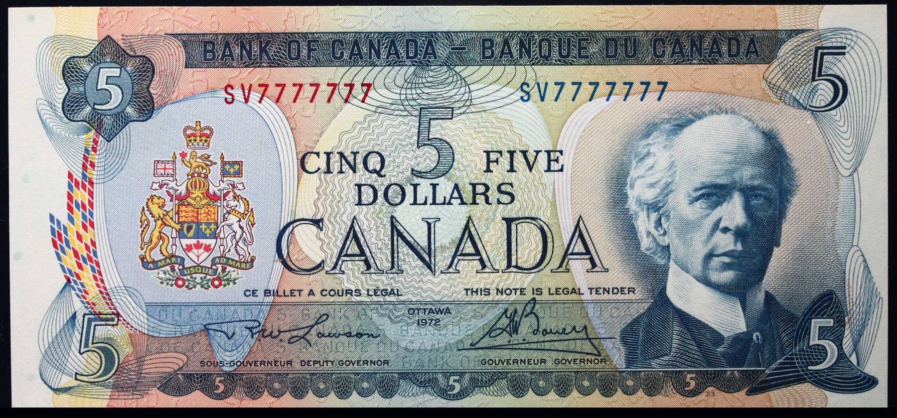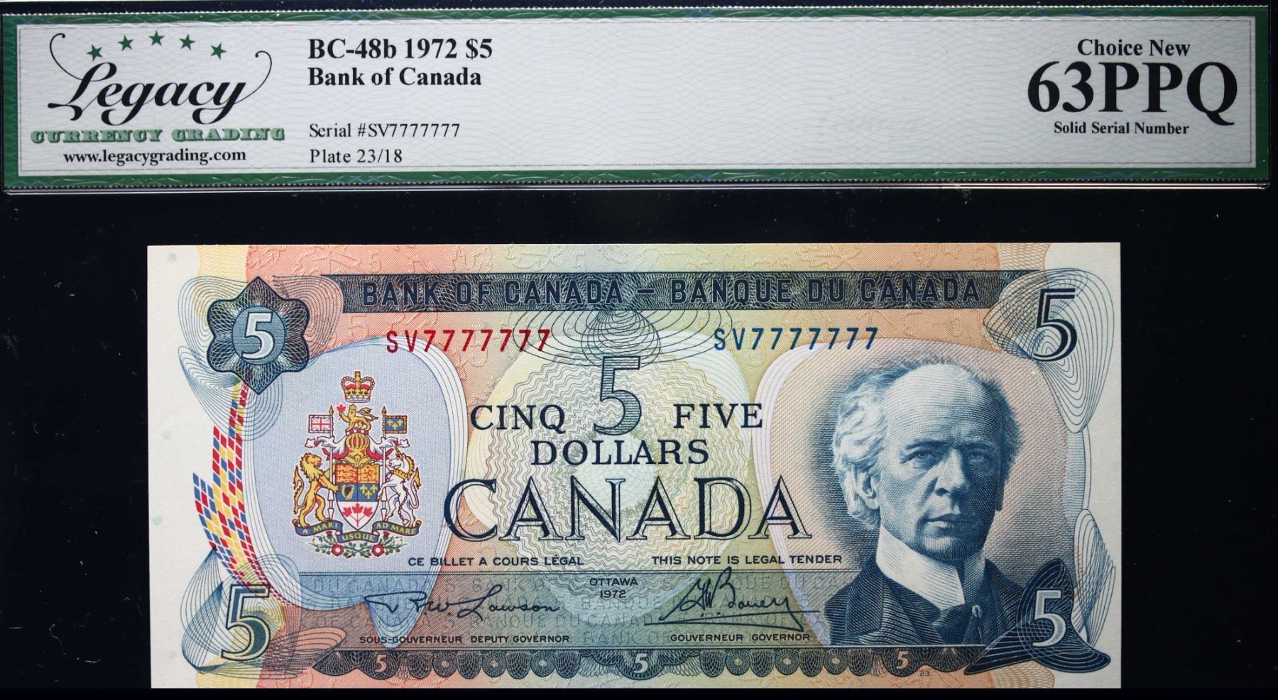 Solid; 1972 $5 BC-48B #SV7777777 LCG Choice Uncirculated-63PPQ