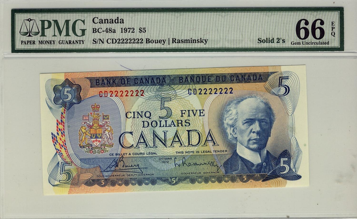 Solid 1972 $5 BC-48a CD2222222 PMG UNC66EPQ