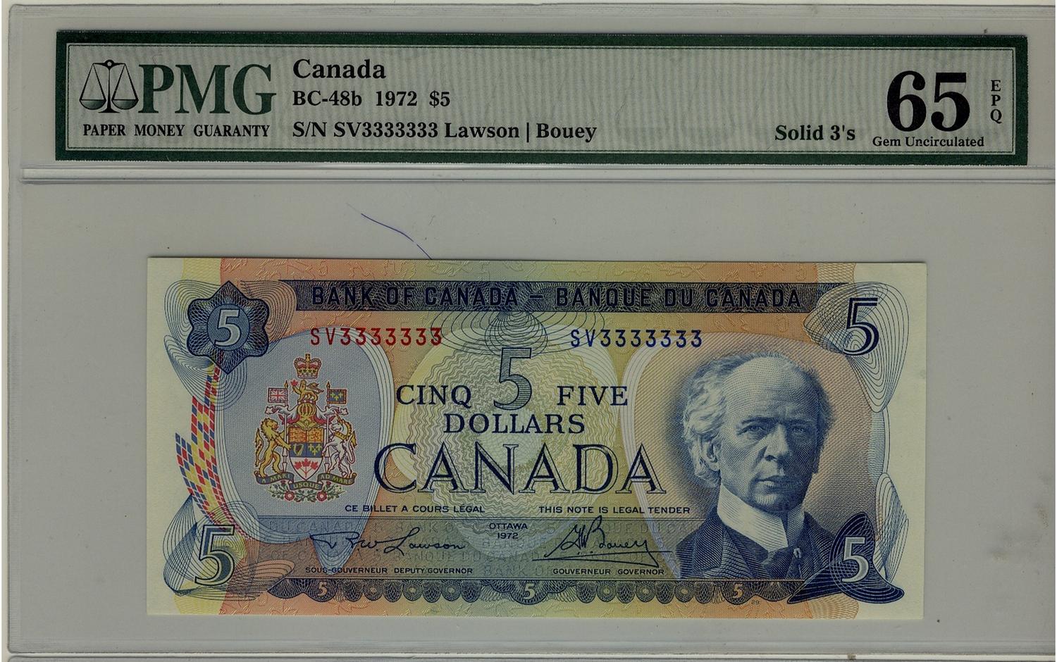Solid 1972 $5 BC-48b SV3333333 PMG UNC66EPQ