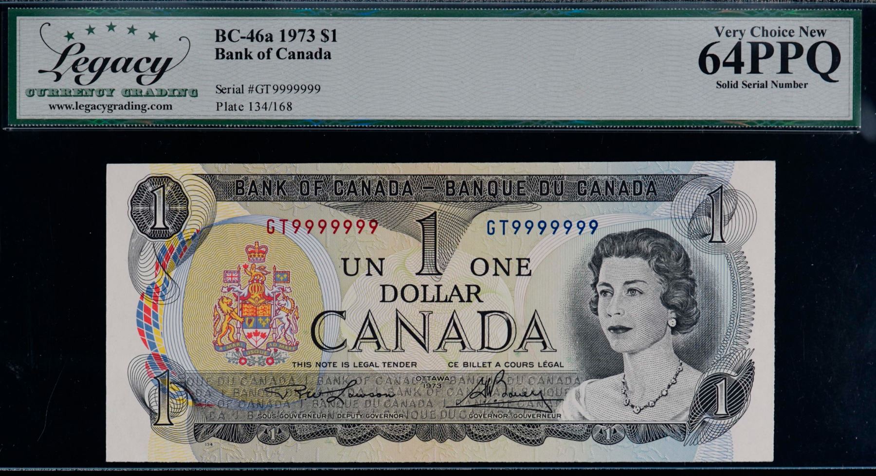 Solid; 1973 $1 BC-46a #GT9999999 Legacy Choice Uncirculated-64PPQ
