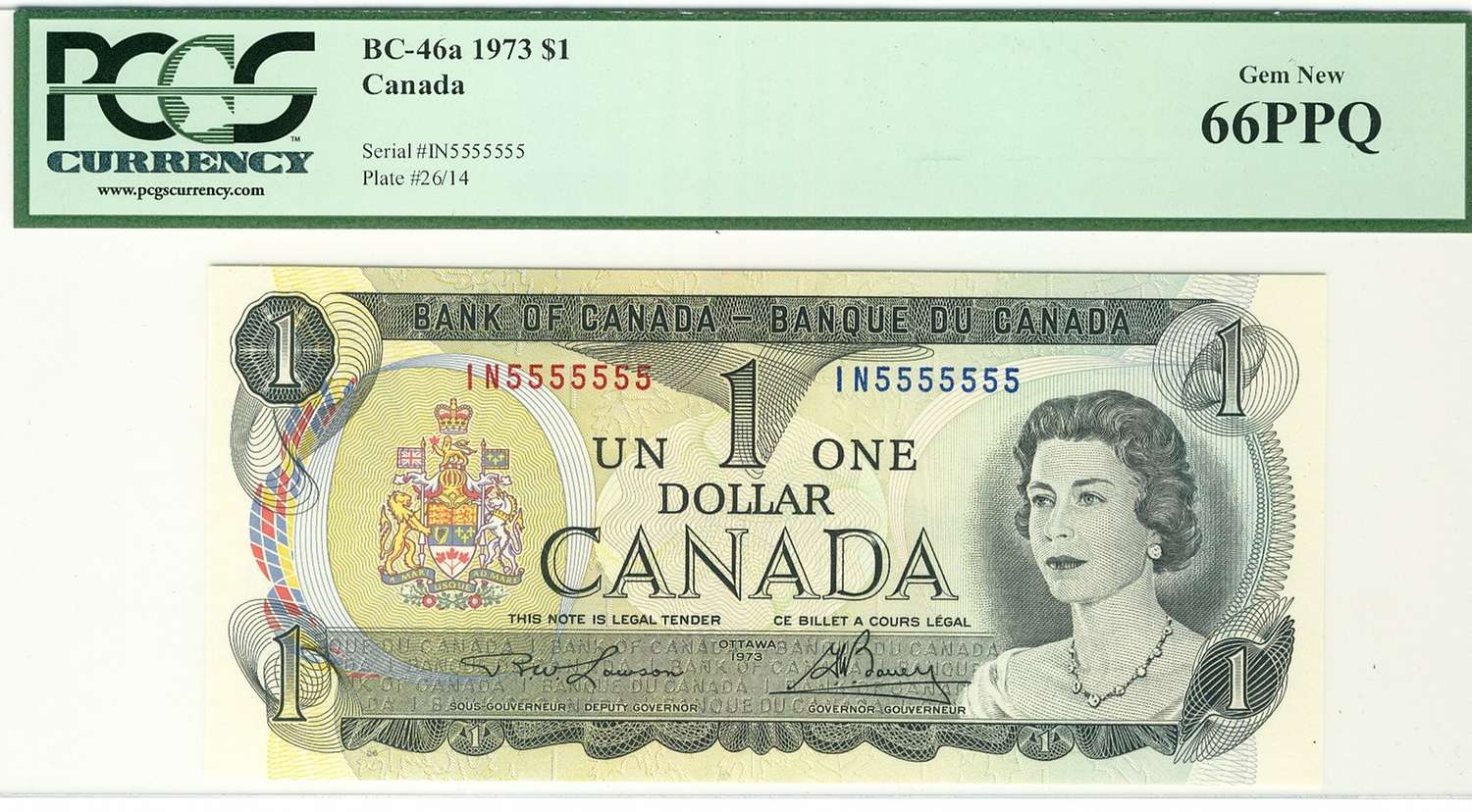 Solid 1973 $1 BC-46a IN5555555 PCGS UNC66PPQ