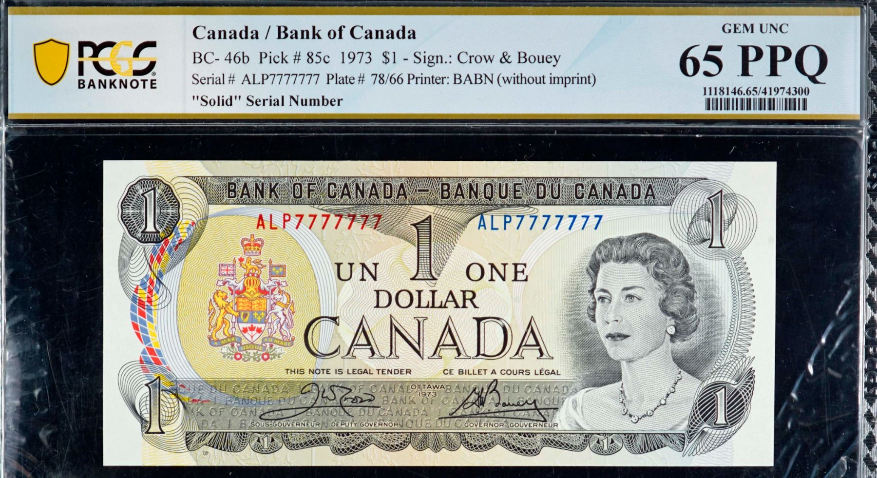 Solid; 1973 $1 BC-46b #ALP7777777 PCGS Gem Uncirculated-65PPQ
