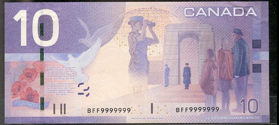 Solid, 2008 $10 BC-68b #BFF9999999. Original AU-UNC. Light mishandling on corner.