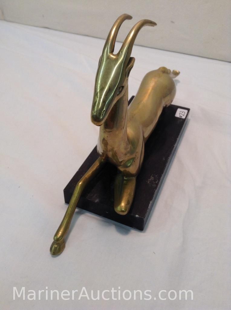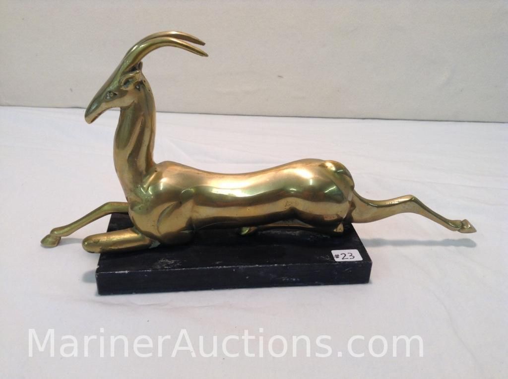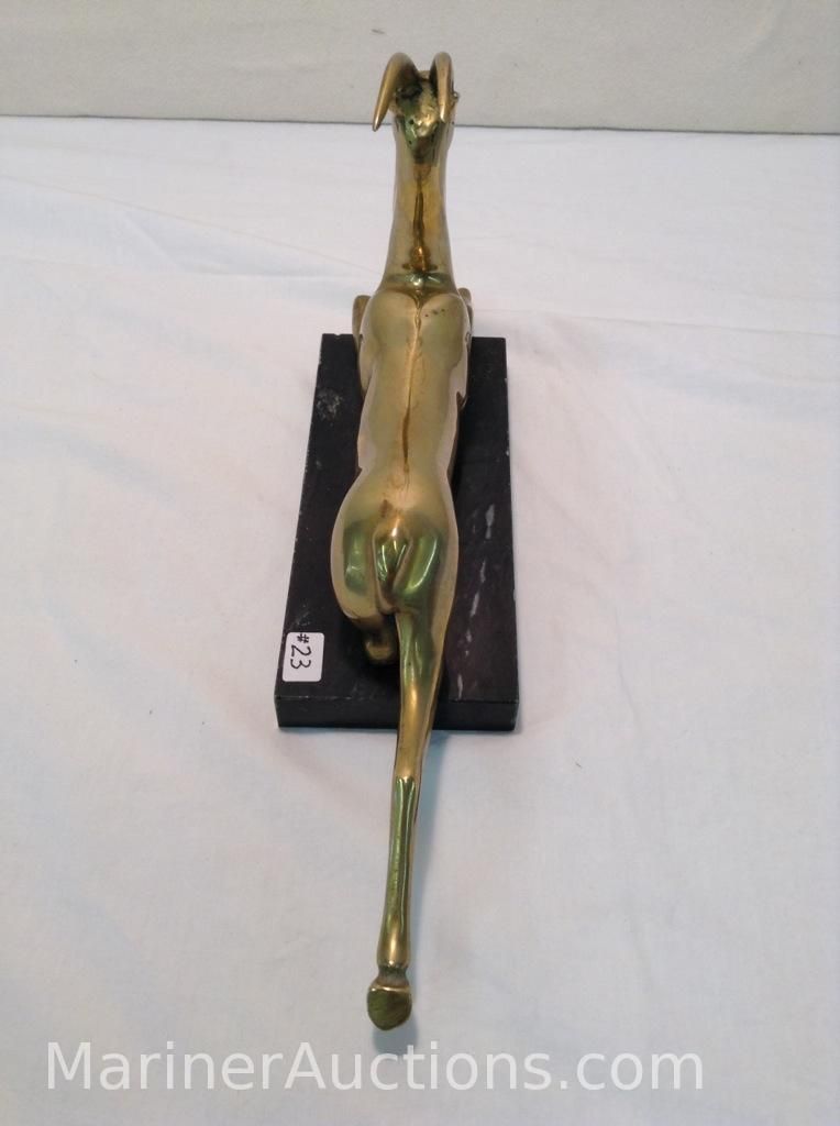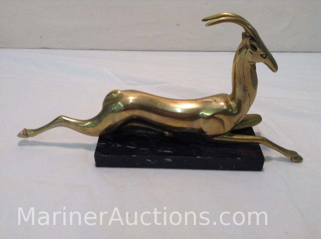 Solid Brass Gazelle on Marble Base (13" long, 6.25" high)