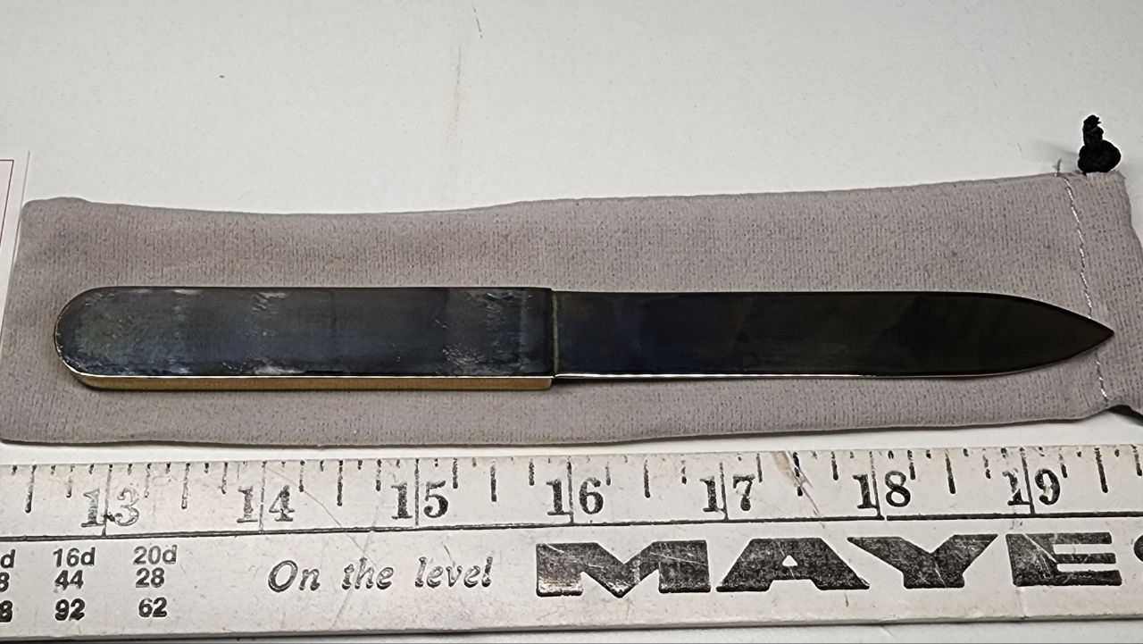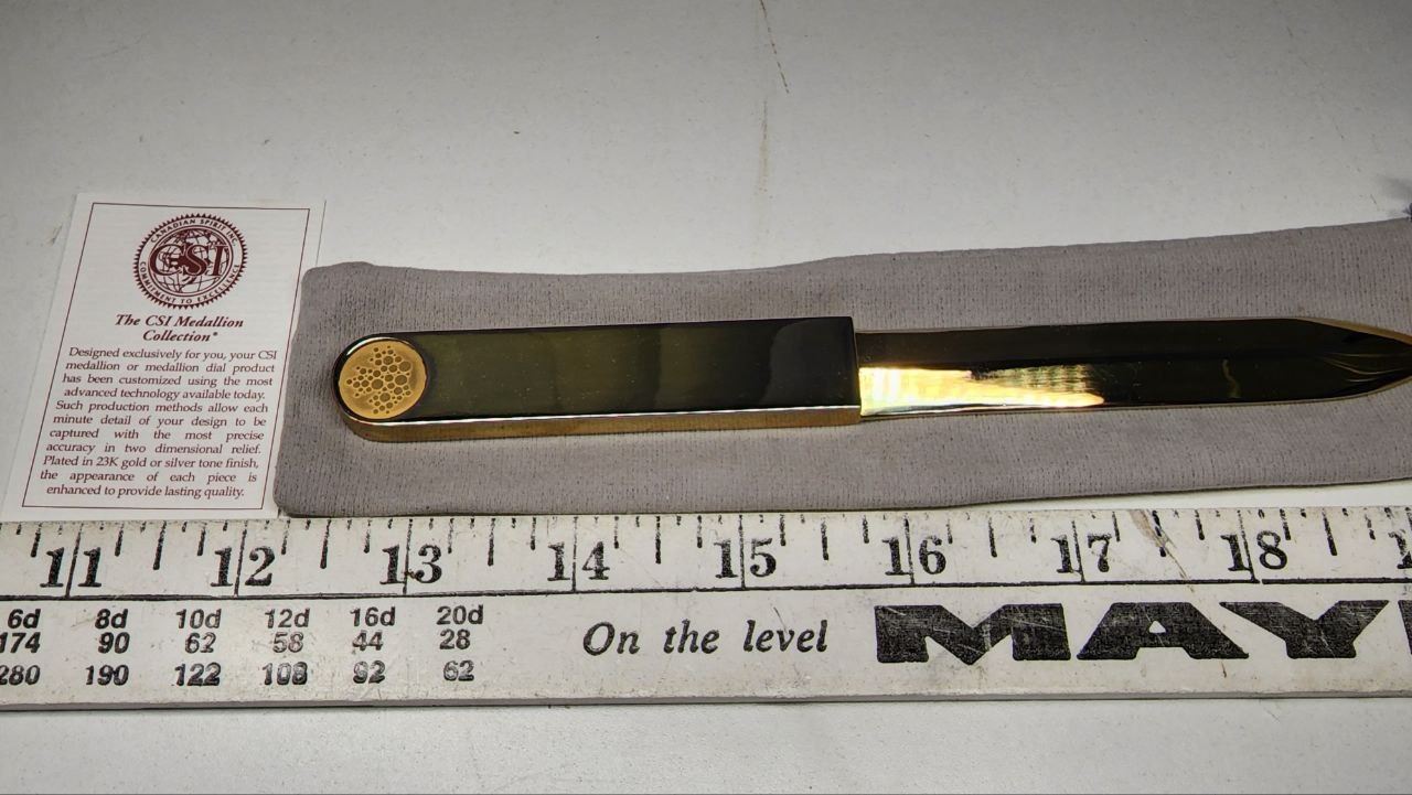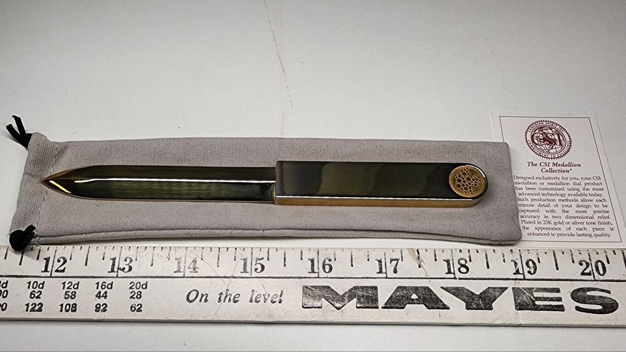 Solid Brass Letter Opener in Velvet Sleeve from the CSI Medllion Collection (Never used)