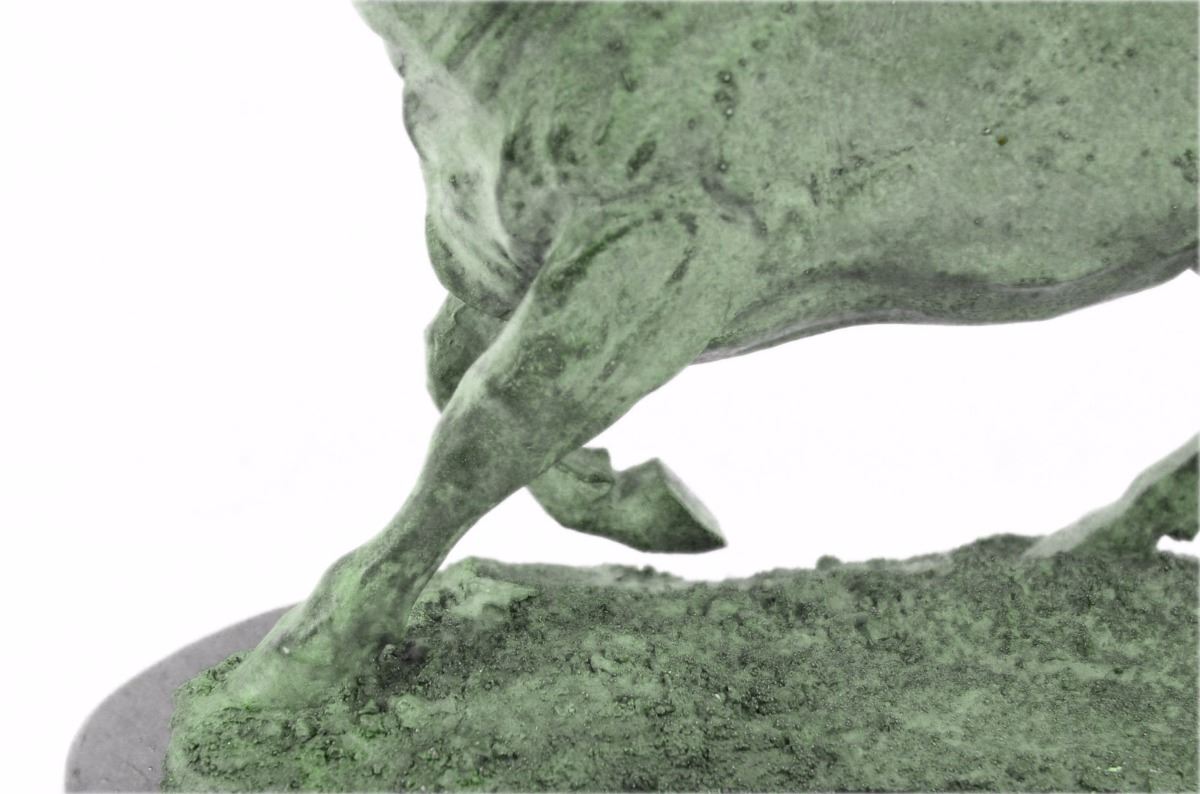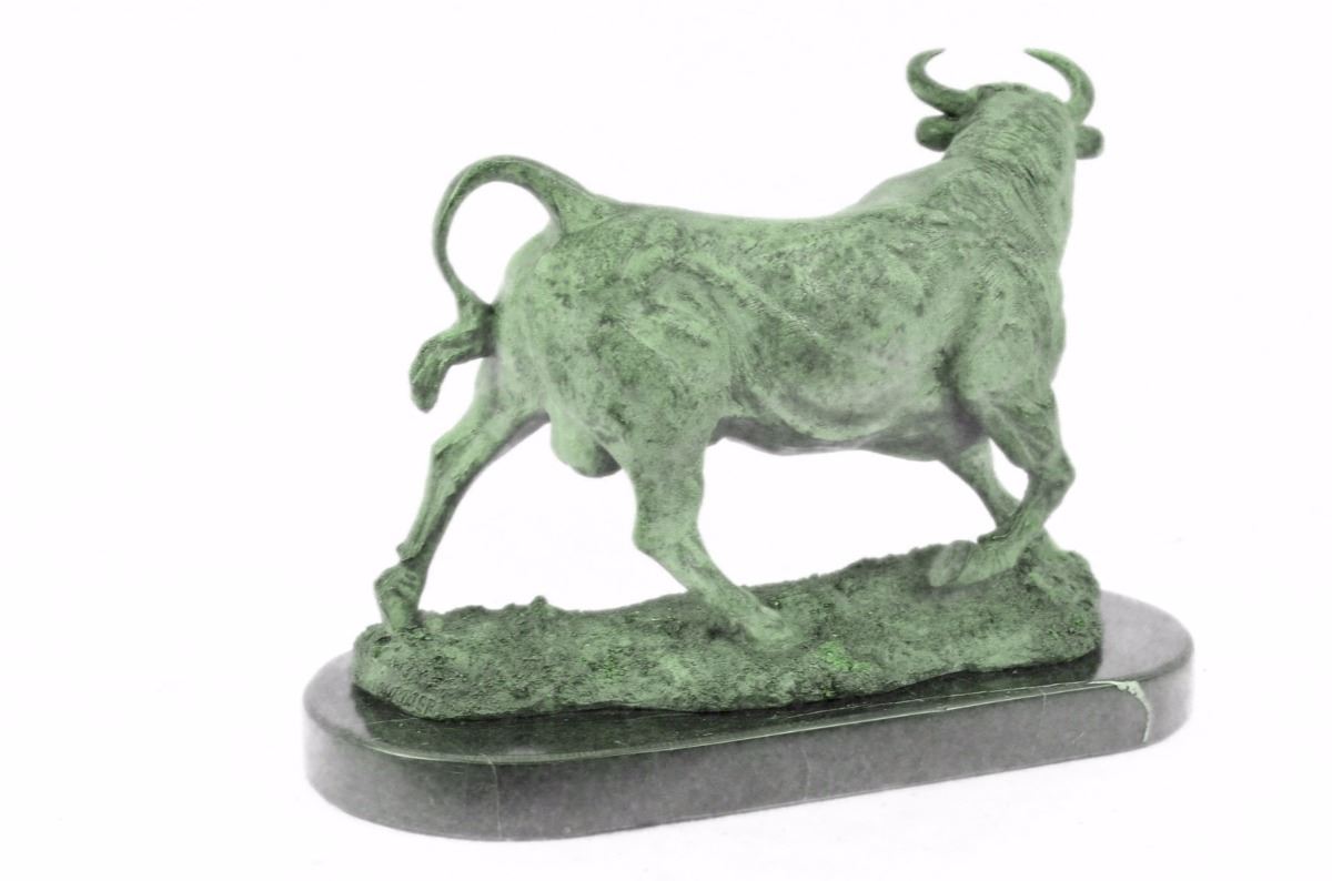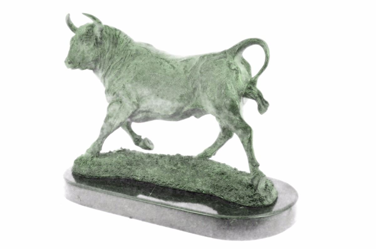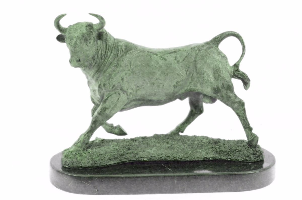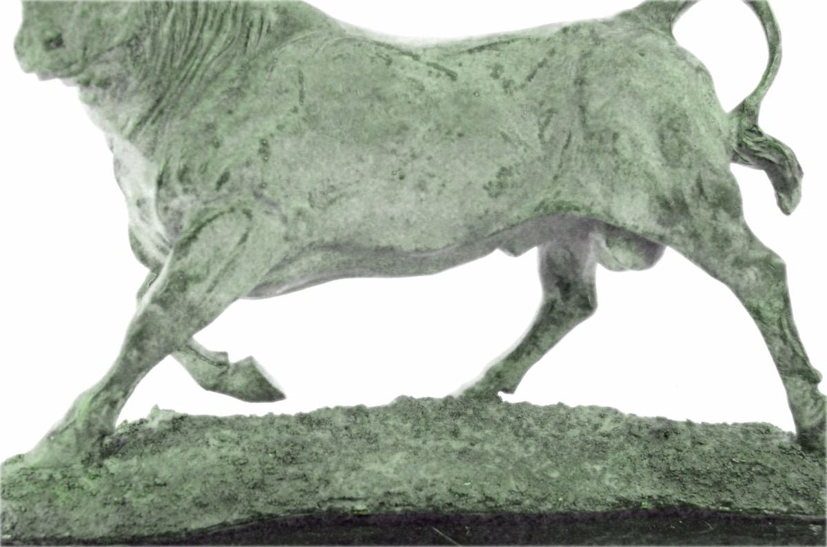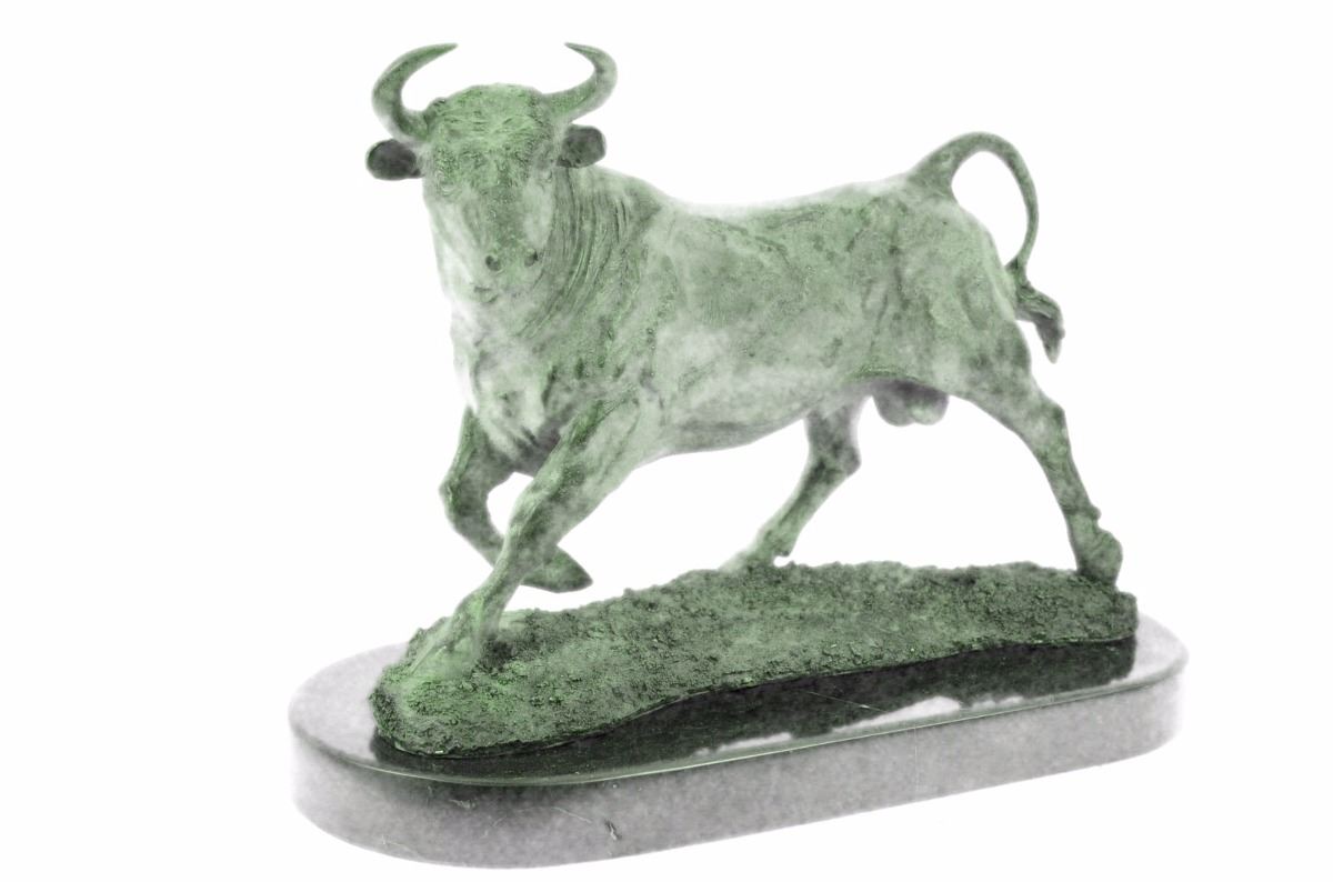No Need To Venture To Spain For A Good Old-Fashioned Afternoon At A Bullfight. The Arena Is In Your With This Spanish Bull Sculpture. Bullfighting Is A Traditional Spectacle Of Spain, Portugal, Some Cities In Southern France And In Several Latin American Countries. It Can Be Considered A Blood Sport For Both The Bull Or The Brave Matador That Faces It In The Ring. This Large Brown Patina Bull Is In Motion And Hunting For Its Next Target.Once He Sets His Eyes On You There'S No Stopping Him. He Digs His Hooves In, Lowers His Horns And Barrels Through. Fully Detailed This Sculpture Was Cast Using The "Lost Wax Method". It Is Mounted On A Round Black Marble Base. Bronze Dimensions With Marble Base: Height 11 X Width 16 inches. Weight: 23 Lbs.