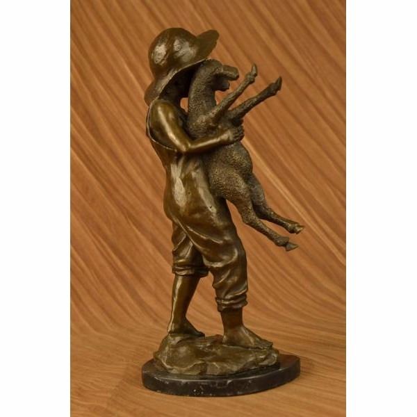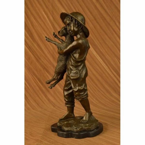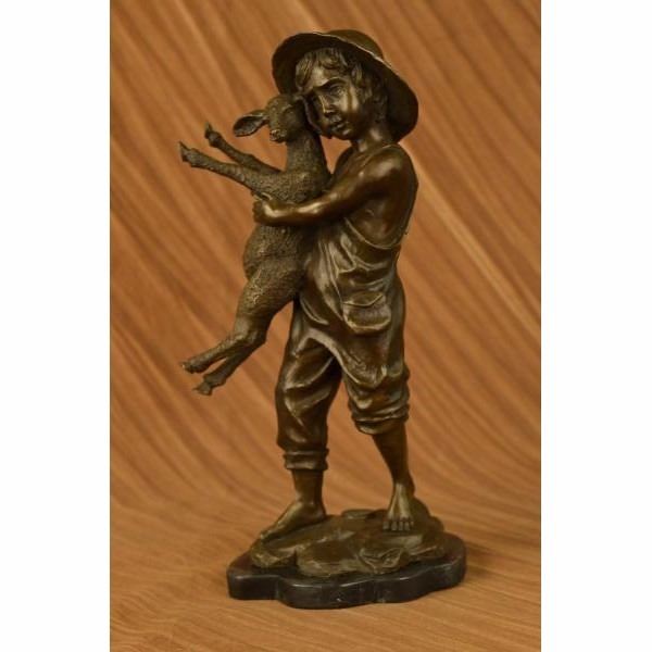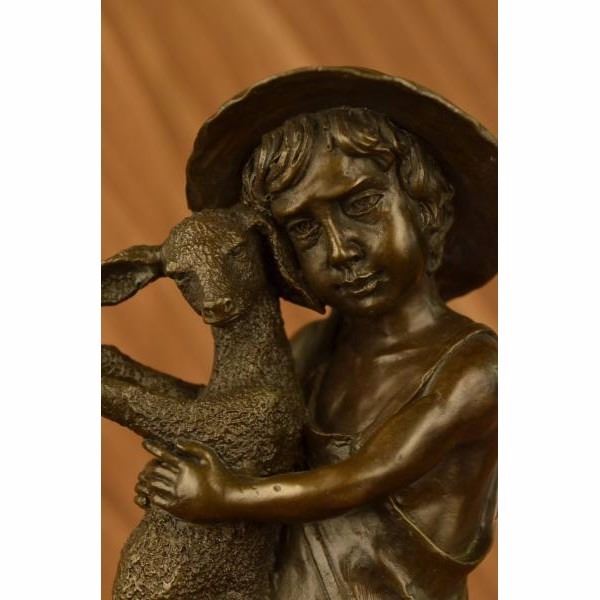 We are presenting an Original Aldo Vitaleh Boy Holding a baby Lamb". This is a beautiful piece standing 15" tall on a 7" diameter base. It features a cute little boy in a overalls holding a little cute lamb. It is in mint condition, no flaws, chips, cracks, crazing or repairs. This is a beautiful and highly collectable figurine. This would be a lovely addition to any collection, this charming little boy with his lamb would look wonderful in any room of your home, or would be an exquisite gift. Thanks for visiting our shop!!! Condition: This sculpture is in perfect condition. Bronze Dimensions with Marble Base:Height 15" x Width 7" Marble Dimensions: Diameter 7" Height without base: 14" Weight : 15LBS Inventory : 27X09147672