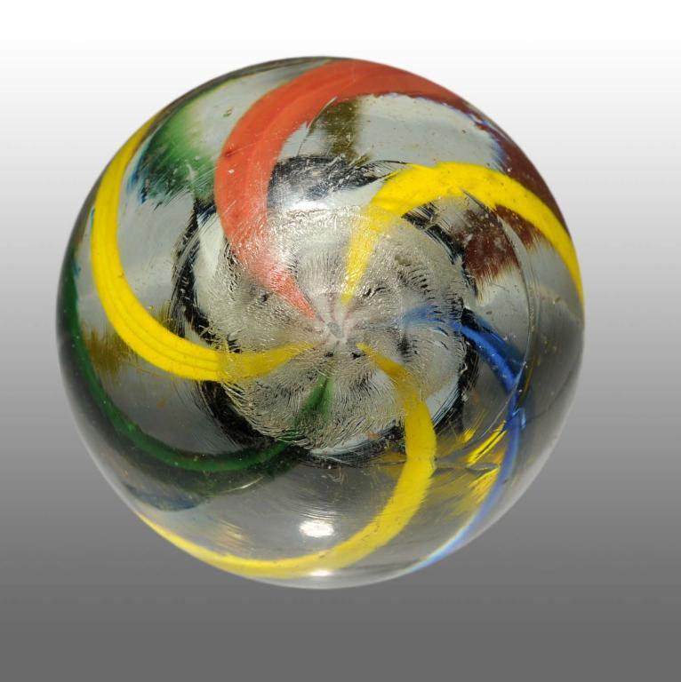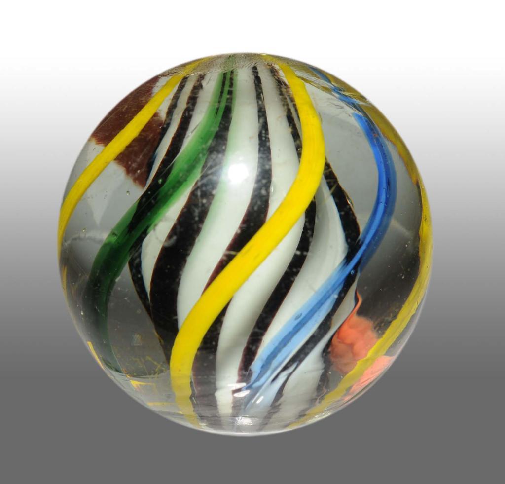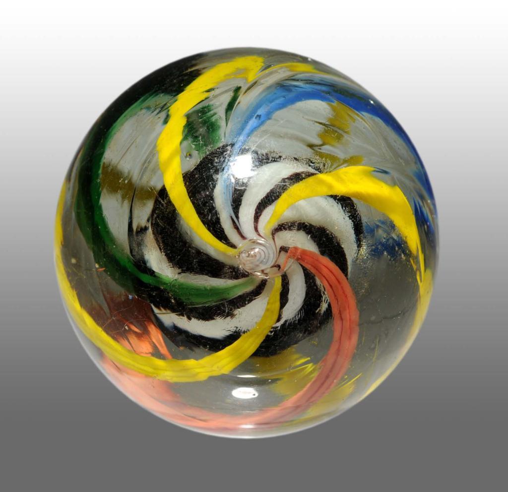 Stunning original surface with unique solid white core and maroon ribs. Condition (9.7). Size 1 - 9/16" Dia.