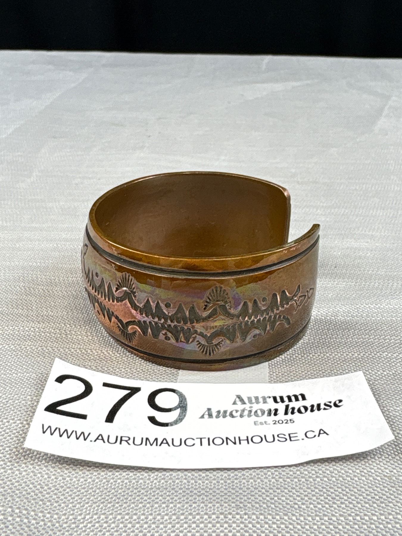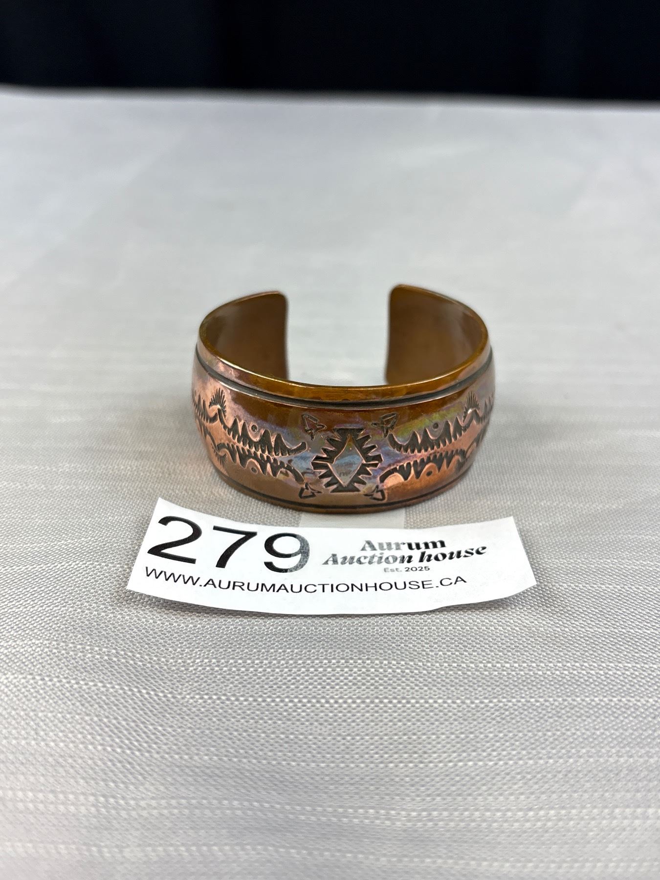 Solid Heavy Hand Crafted Native American Copper Open Cuff Link Bangle