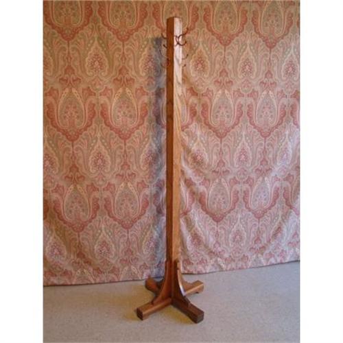 Post and base are 2 3/8" square with visible mortised layers. Item is all original including four bronze/copper hooks. It is extremely well made and attractive up close; it stood out at a Kanawha, Iowa, estate sale. Preservation Project artisans thought enough of this 1920's World War I era piece to restore it to mint condition so that it will stand tall in your office or home come war or peace!