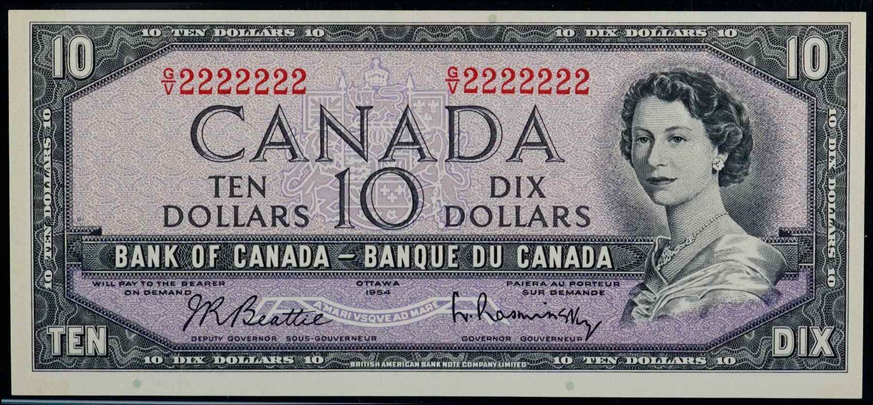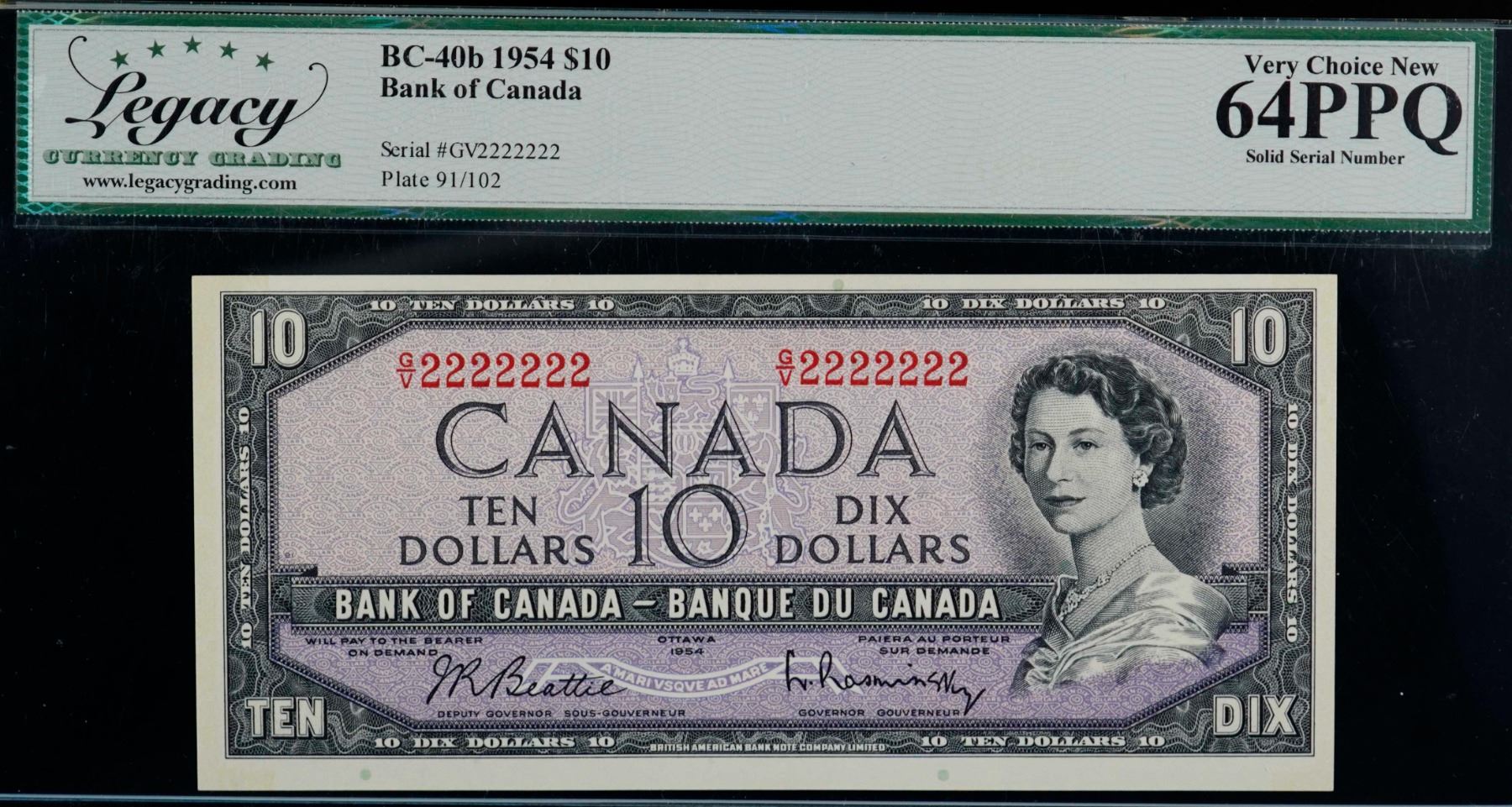 Solid Number; 1954 $10 BC-40b #GV2222222, Legacy Currency Grading Very Choice Uncirculated-64PPQ.