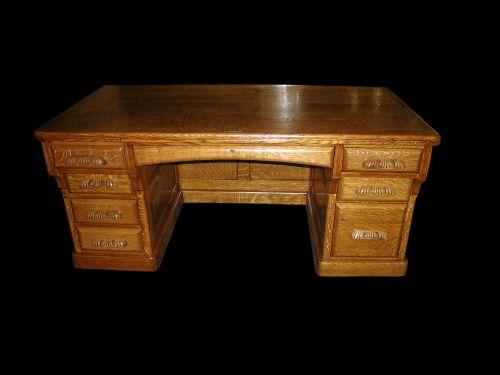 Solid Oak, Quarter-sawn desk, restored all beveled panel and solid