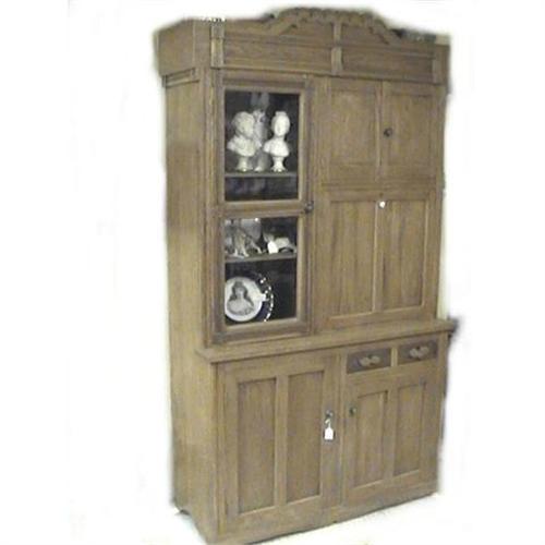 SOLID OAK cupboard for the kitchen with tons of storage and display shelves with glass doors.</em></td>