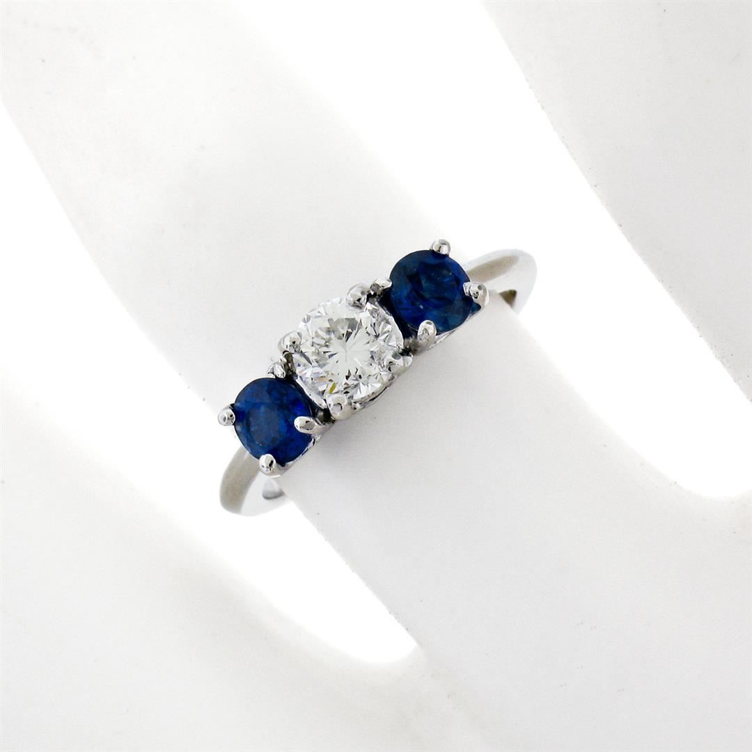 Solid Platinum 1.32 ctw Round Brilliant Prong Sapphire Diamond 3 Three Stone Rin