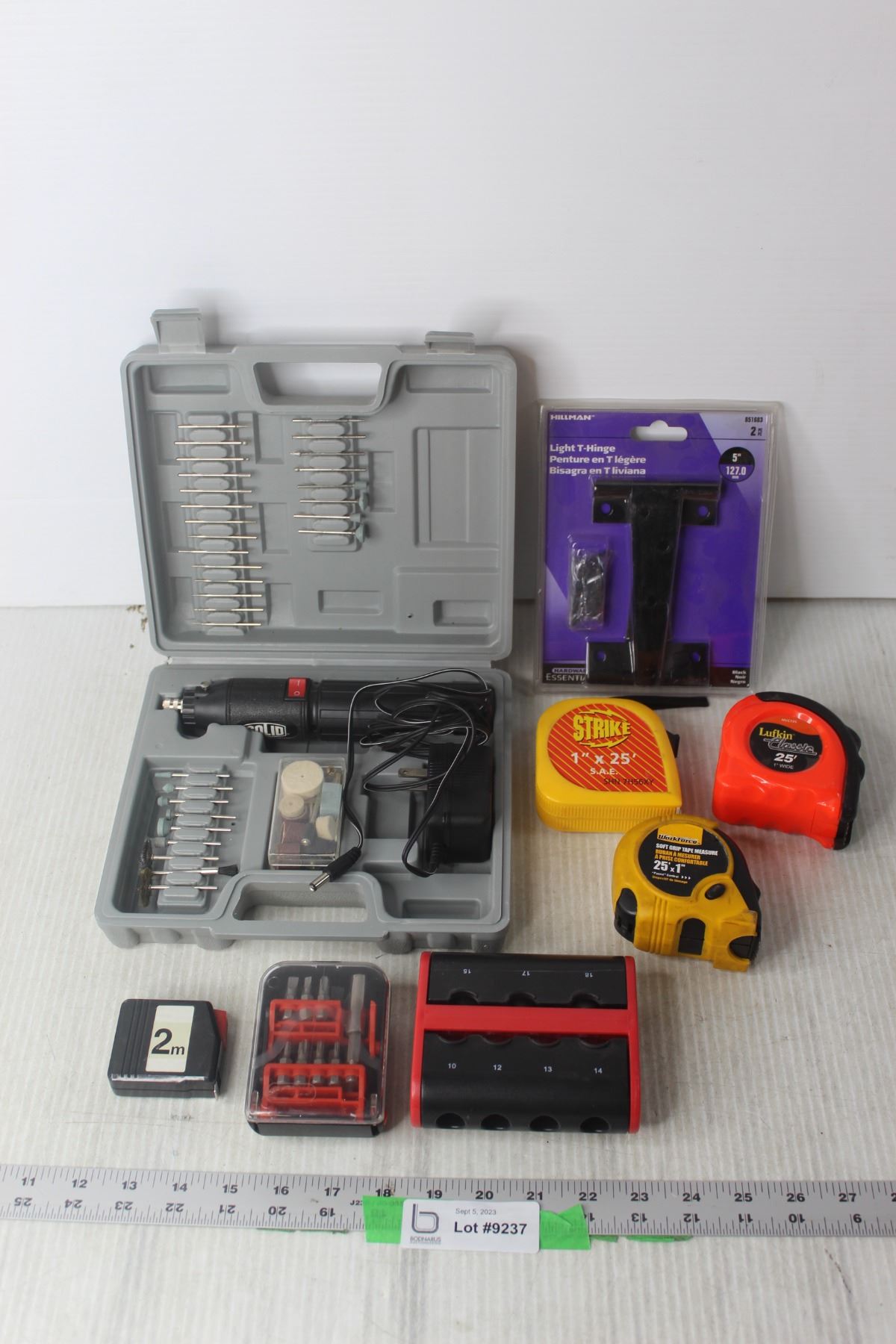 Solid Rotary Tool Kit, Tape Measures, Light T-Hinge, Misc.