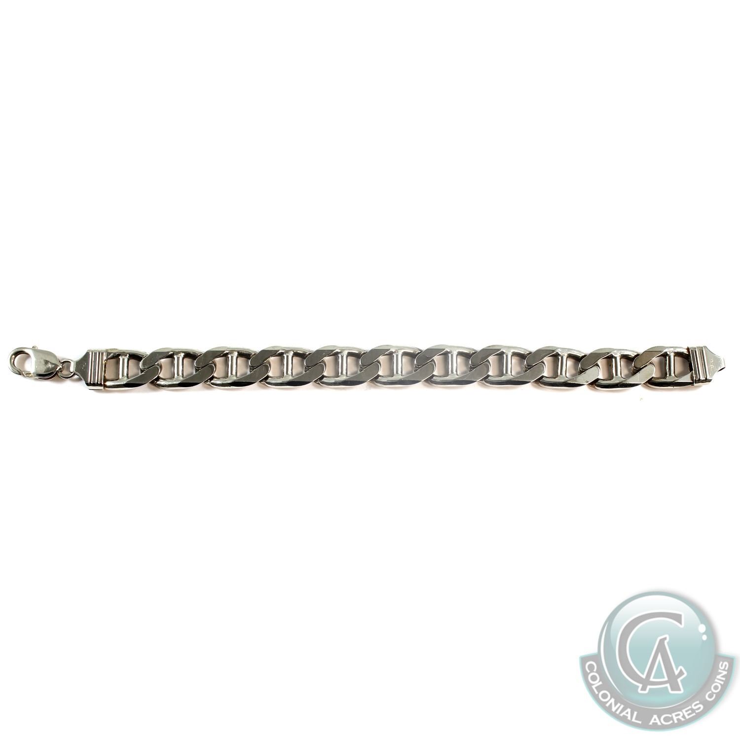 Solid Sterling Silver Anchor-Link Bracelet with Lobster Clasp. Measures 9" in length with a total weight of 51 grams.