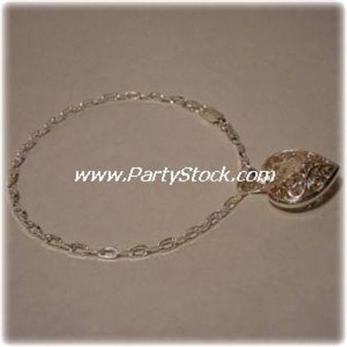 Solid Sterling Silver Italian Diamond Cut Chain Bracelet of 7.5 Inches with 3/4 " Puffy Filigree Heart Pendant (40008027)