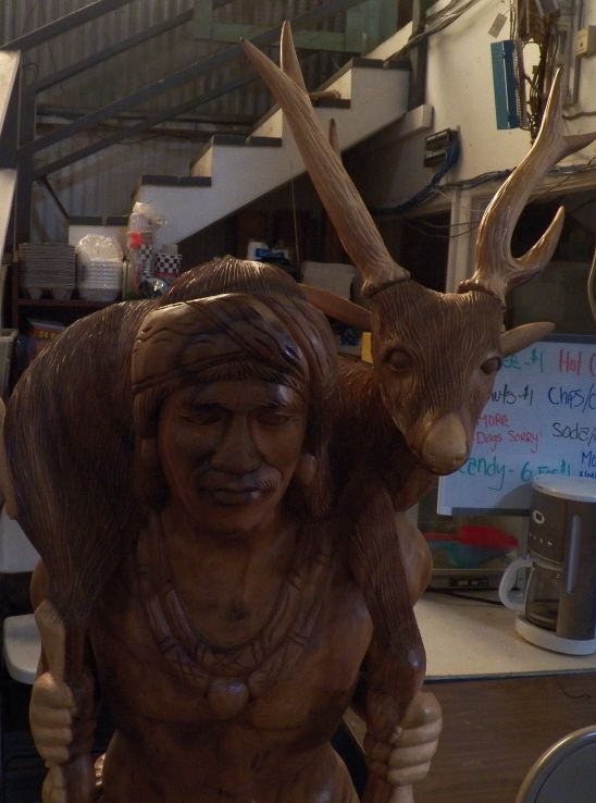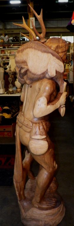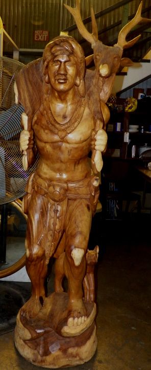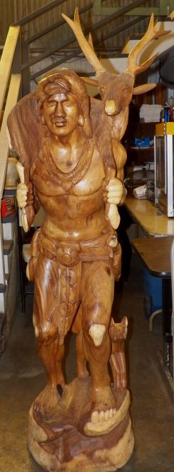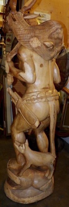Wooden Indian with Deer on Shoulder and Dog by his Side This is a very good Wooden Indian Approx 17" wide x 68" tall