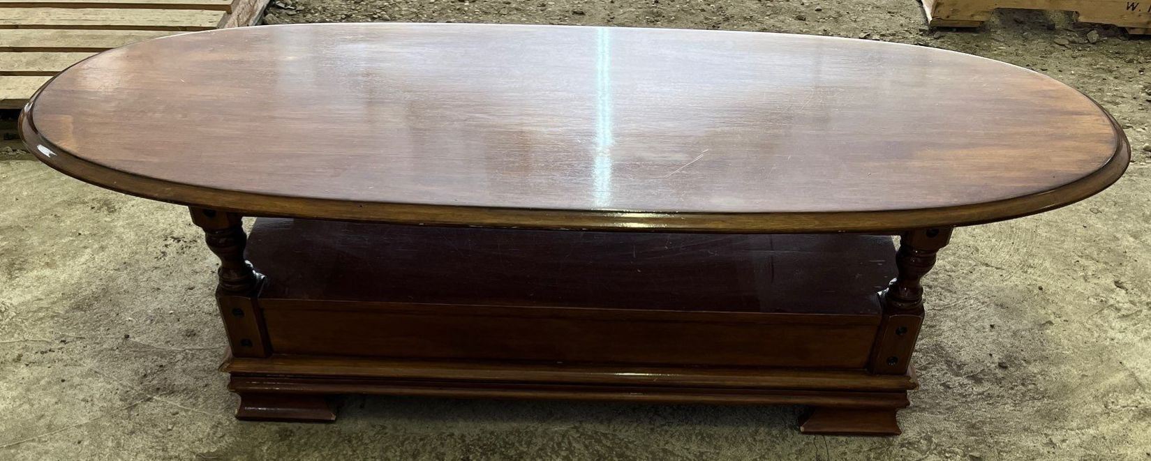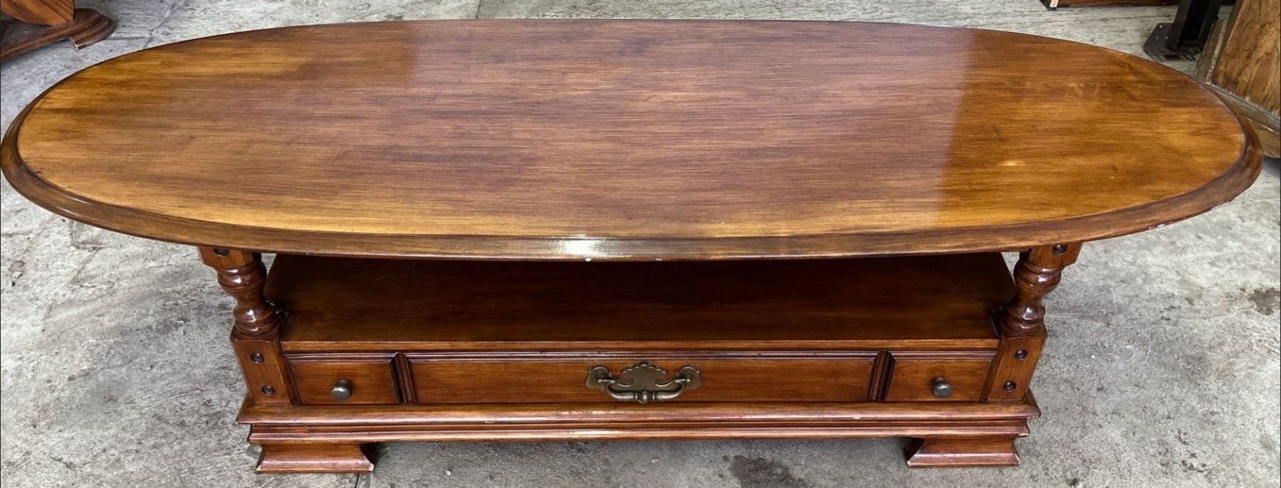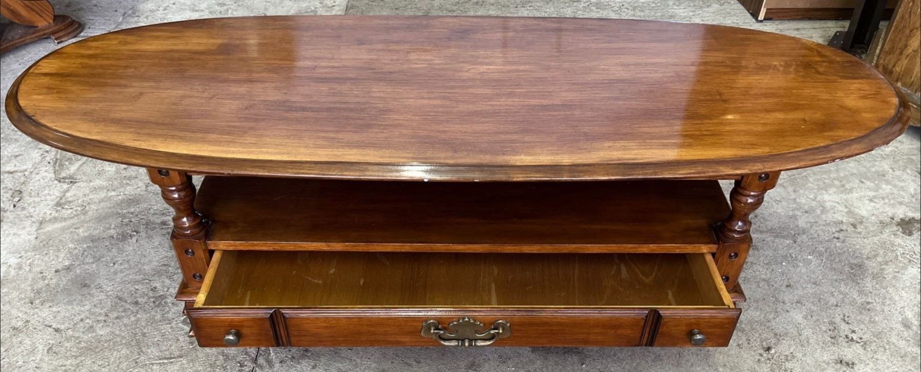 Solid Wood Oval Shaped Coffee Table with Drawer 60Lx22.5Dx16H