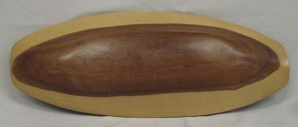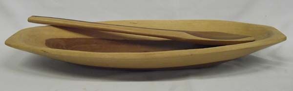 Solid Wood Shaped Relish Dish and Spoon. Very nice shape to this long shallow relish dish, with a matching spoon. This is rain forest Brazilian heartwood, handcrafted by Amazon Indians. Dish measures 18''Lx6.75''W.