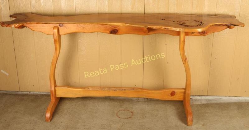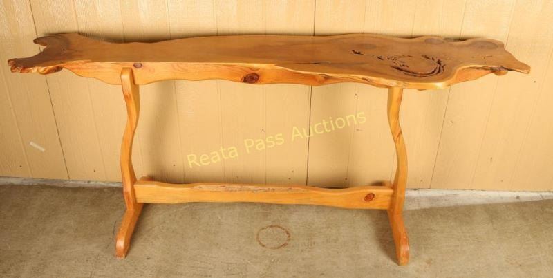 Made with a Juniper top and Pine base by a local artisan. Measures 76" long and stands 32" high.
