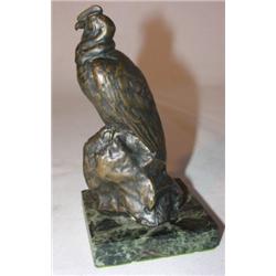 Solid bronze figure of vulture. Stands 5 1/2" tall on a faux marble base.