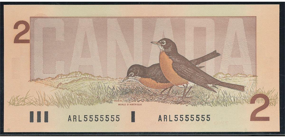 Solid issue; 1986 $2 BC-55a #ARL5555555, PCGS Superb Gem UNC67PPQ.