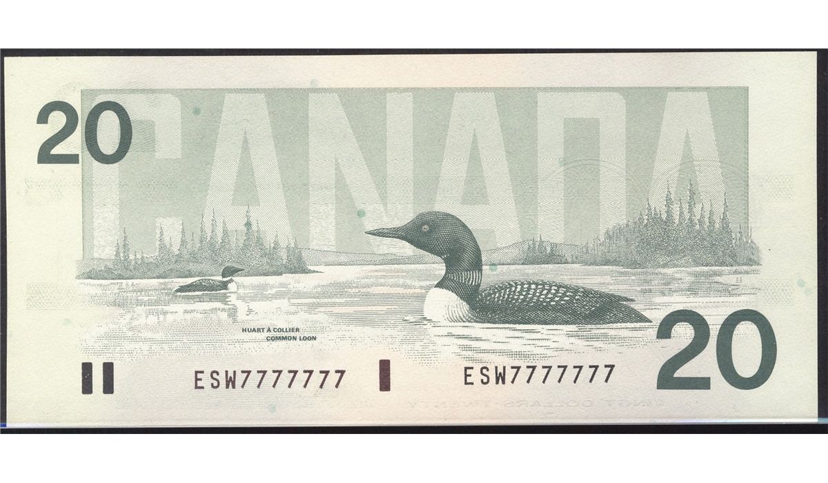 Solid issue; 1991 $20 BC-58b #ESW7777777, PMG Gem UNC66EPQ.