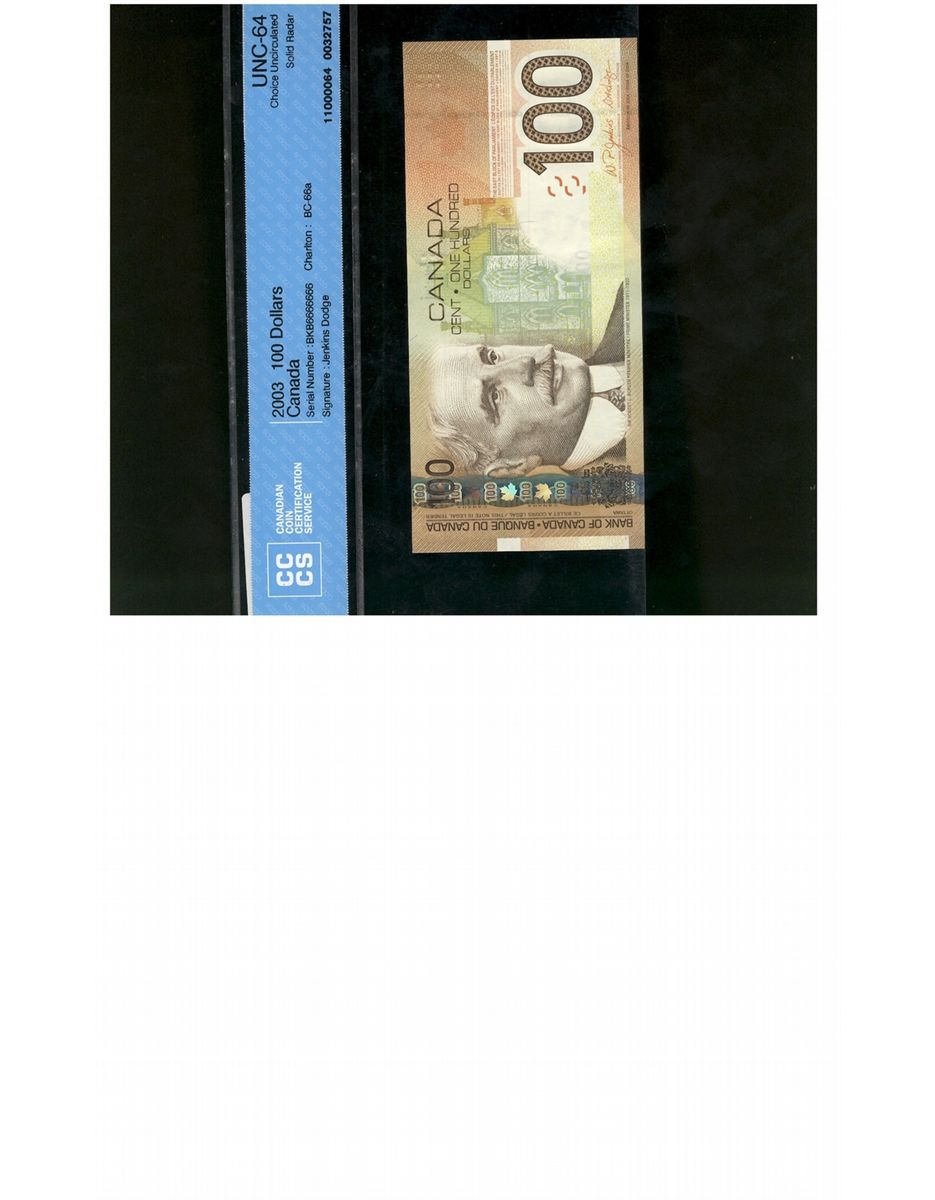 Solid issue; 2003 $100 BC-66a #BKB6666666, CCCS CH UNC64.