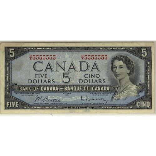 Solid numbered note, BC-39b 1954 $5 #5555555