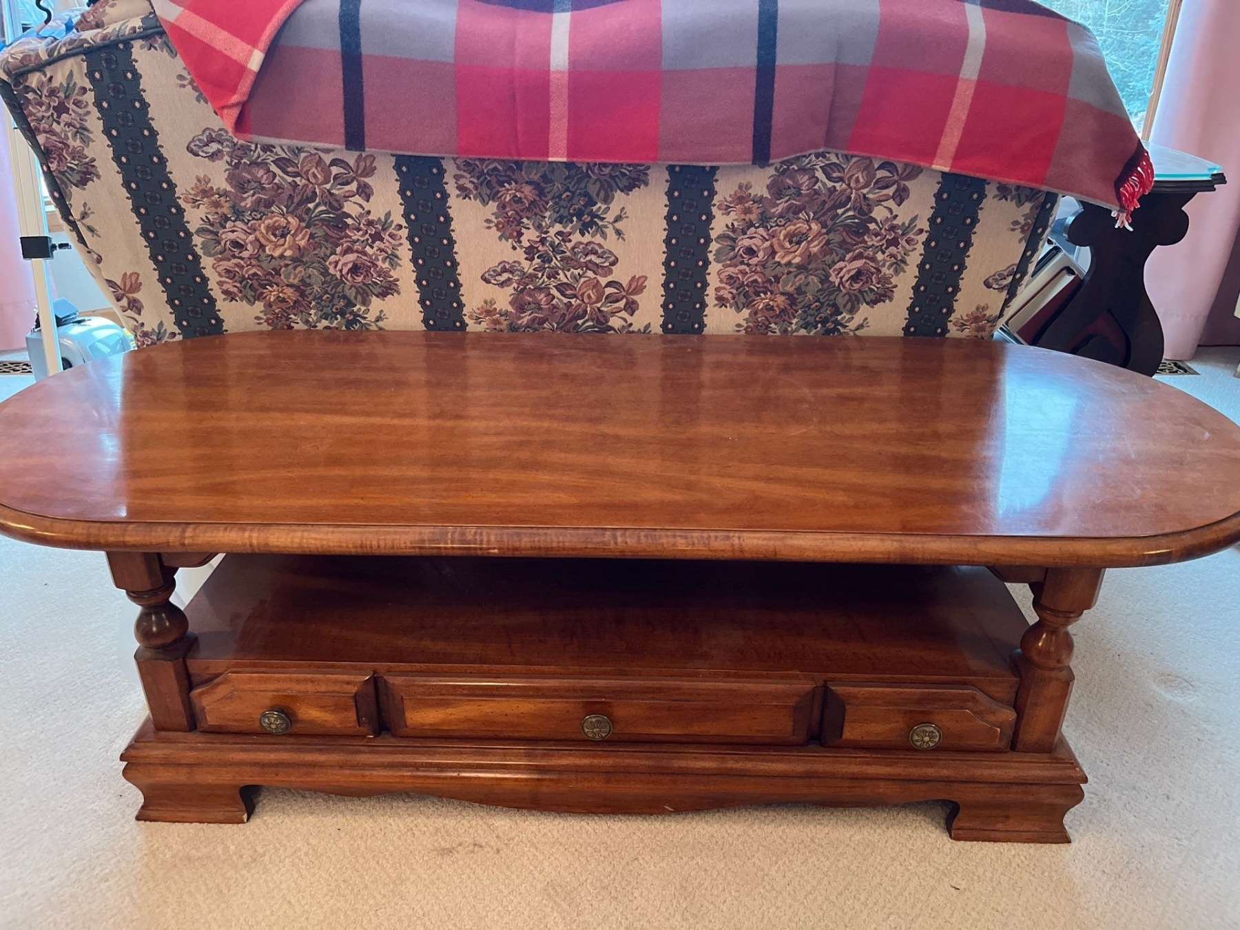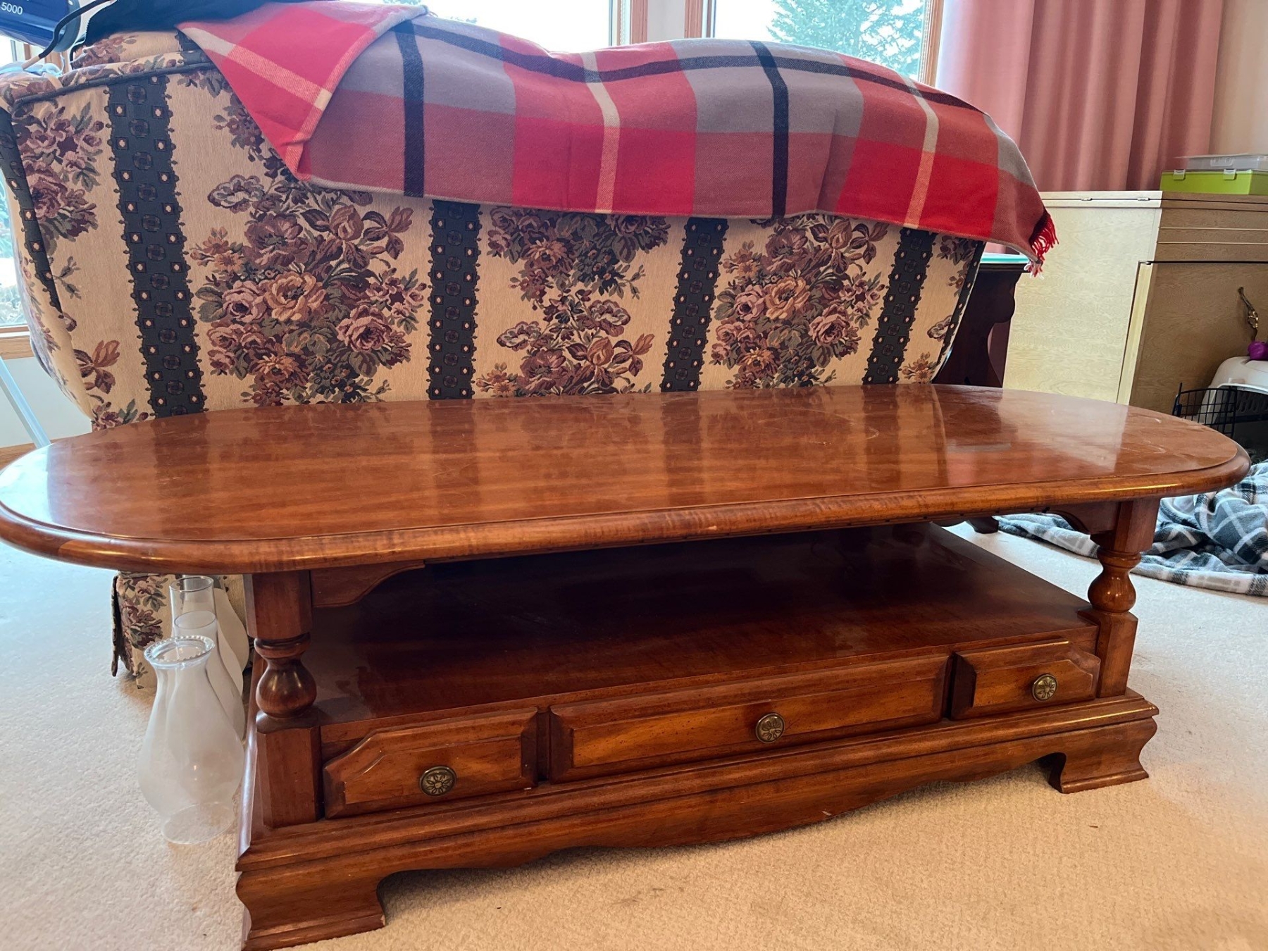 Solid oak coffee table in amazing Condition. 59 L 16 h 24w