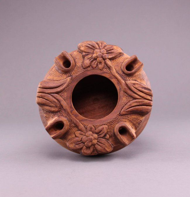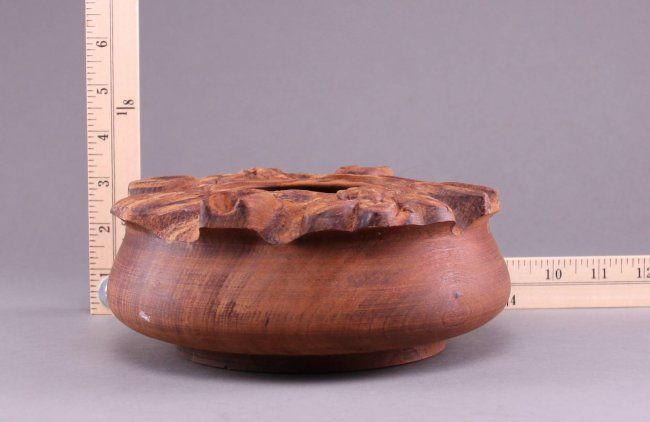Solid one piece hardwood bowl. Unknown origin. (Size: See last photo for measurement.) Photos are part of the description representing the condition report. Pangaea Auctions urges Bidder's to view all attached photos.