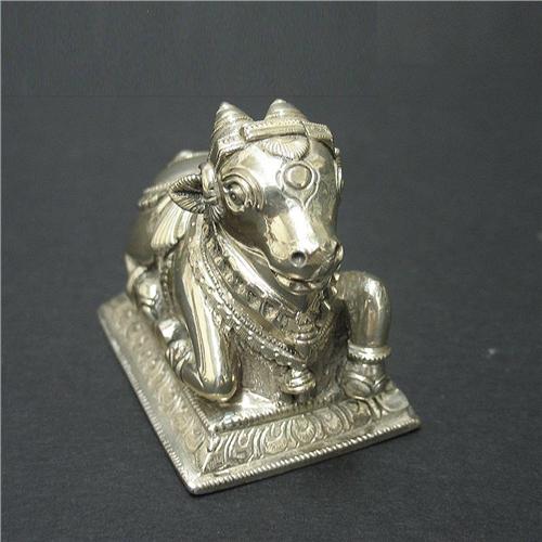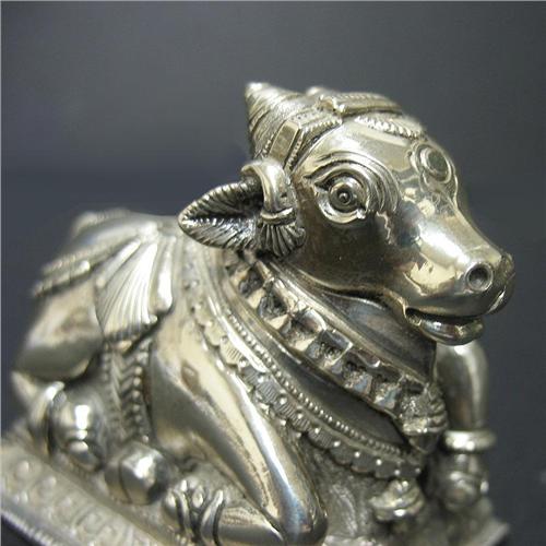 Solid silver figure of Shiva, Hindu deity in his incarnation as a bull; attributed to the 13th C. in the province of Karnataka India; 2" high; 6.2 troy oz.; no visible defects